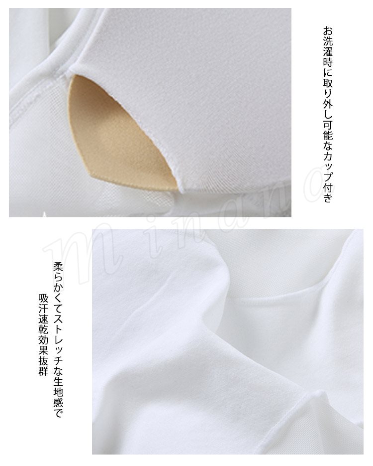 ノンワイヤーでアンダーは締め付けないさらさら生地でスポーツブラとしても最適♪