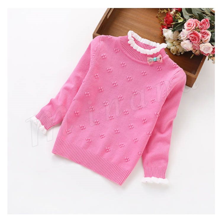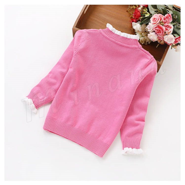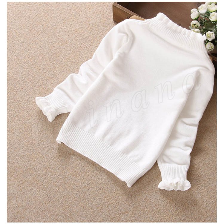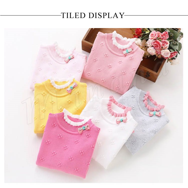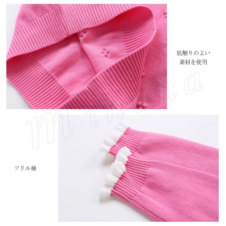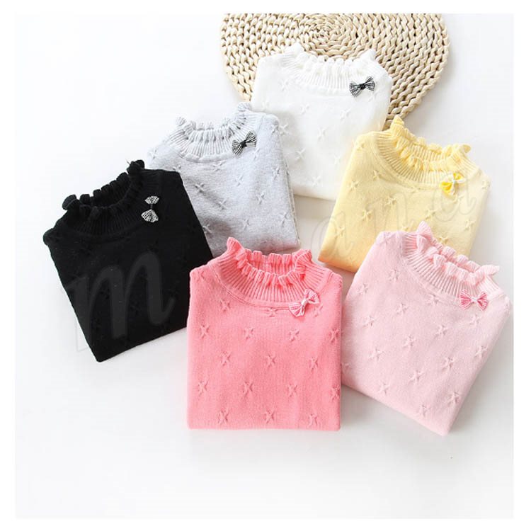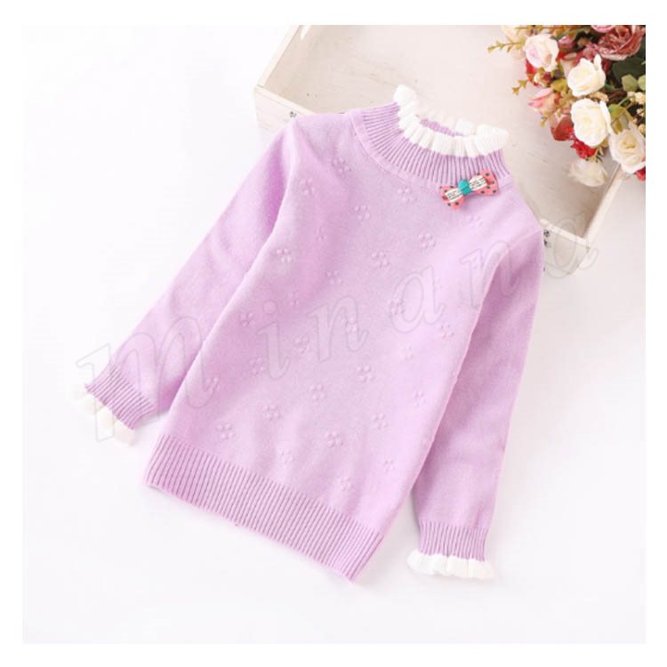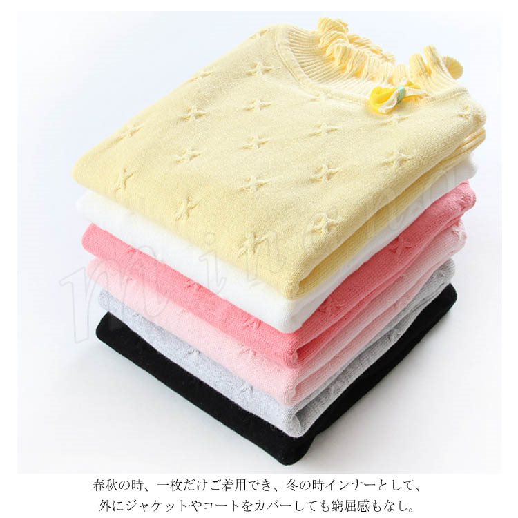 | 子供に向け超可愛い長袖ニットプルオーバーが登場です。 フリルデザインのハイネックとリボン飾りがお可愛さ満点です。 春秋の時、一枚だけご着用でき、冬の時インナーとして、外にジャケットやコートをカバーしても窮屈感もなし。 ジーンズなどカジュアルスタイルはもちろん、レギンスやワイドパンツなど合わせても可愛いです。 | |