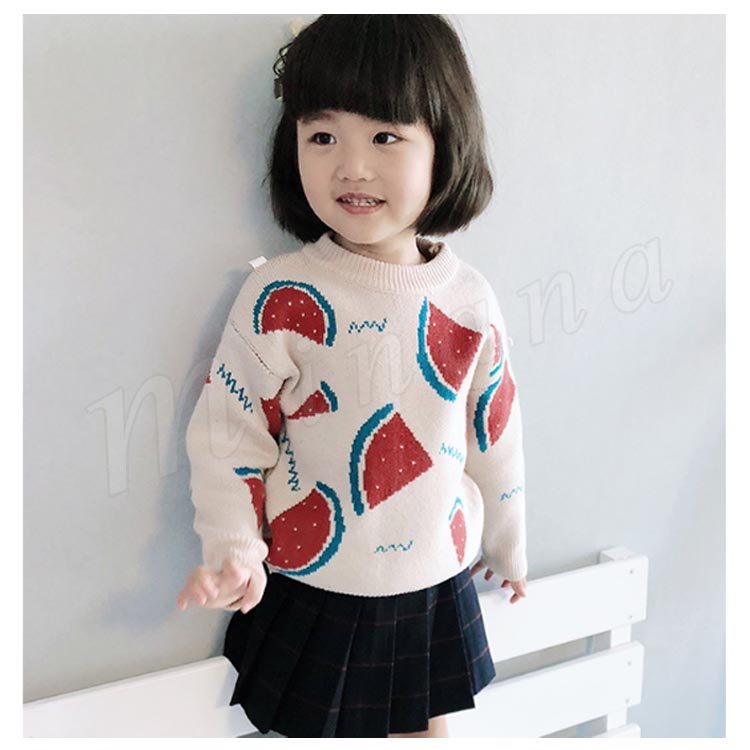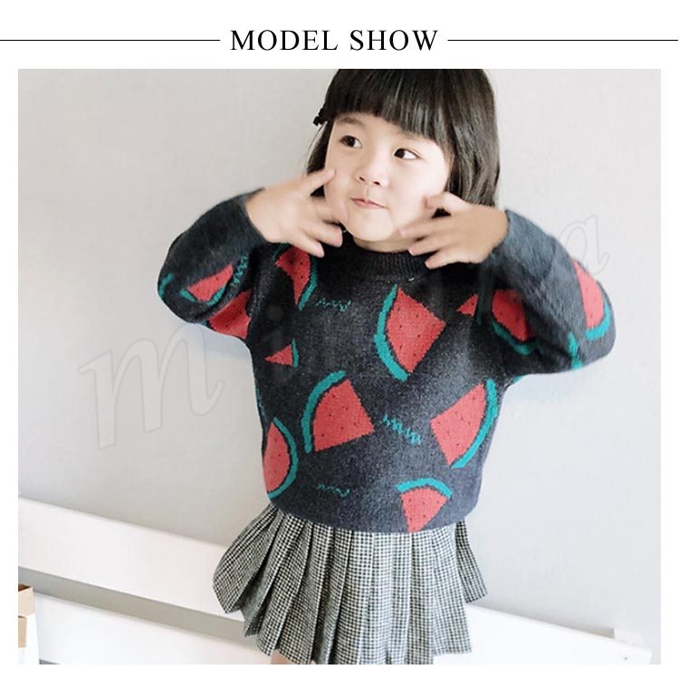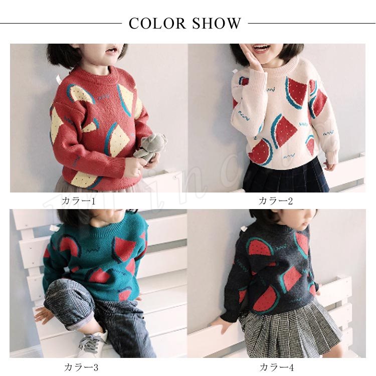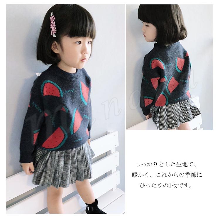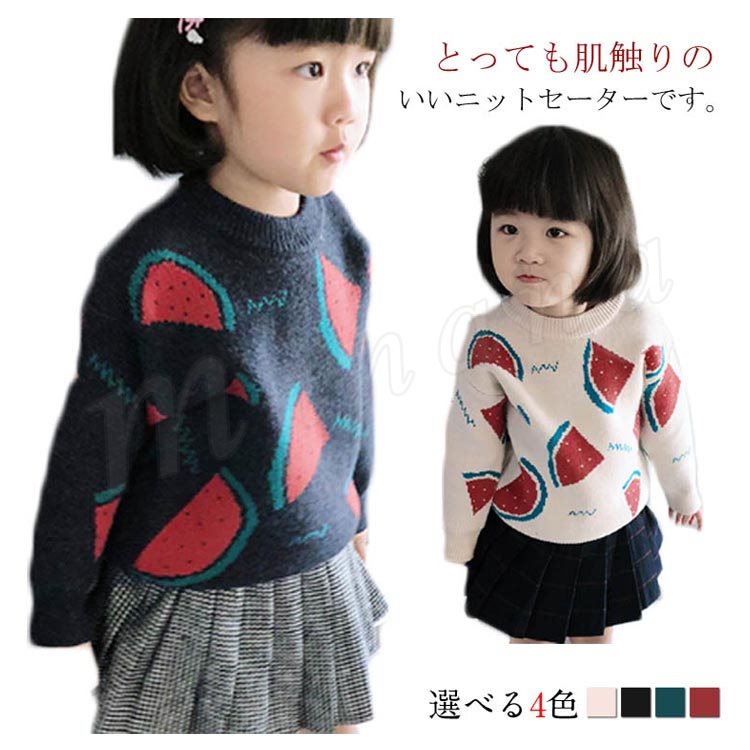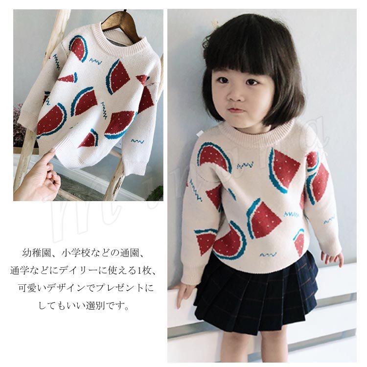 子供服 ニットセーター ニットトップス プルオーバー 女の子 ガールズ ニット セーター クルーネック かわいい 丸首 女児 長袖 カジュアル 防寒
