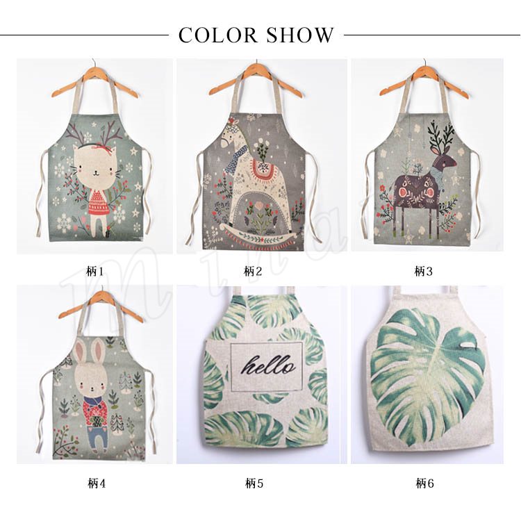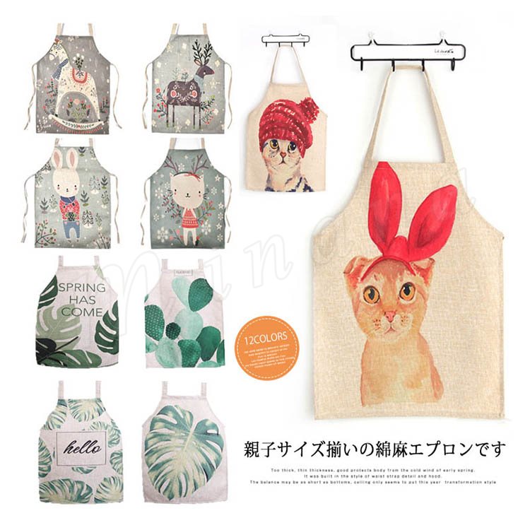 親子ペアエプロン エプロン キッチンエプロン 汚れ防止エプロン プリント キュート カジュアル 猫 うさぎ モクバ トナカイ 植物 お絵かき・キッチン