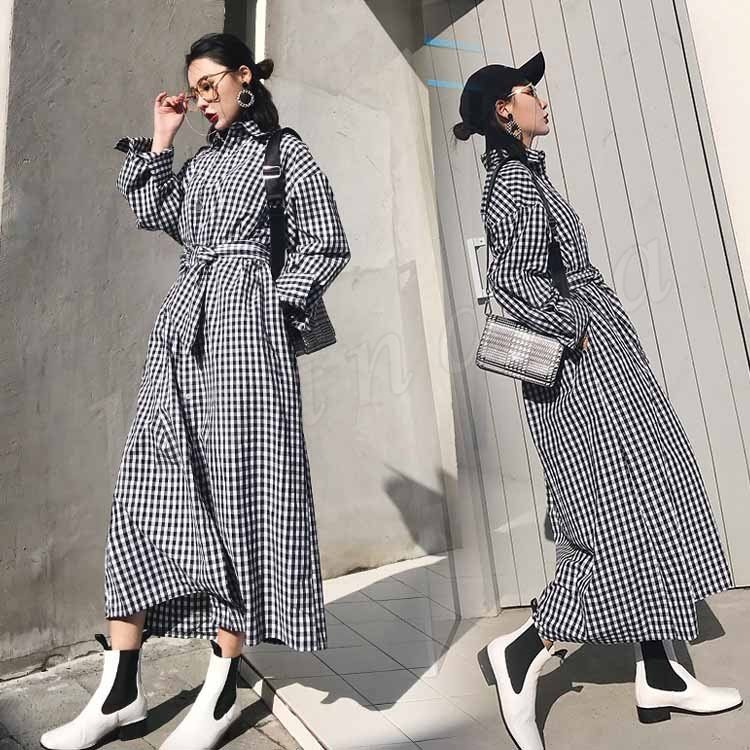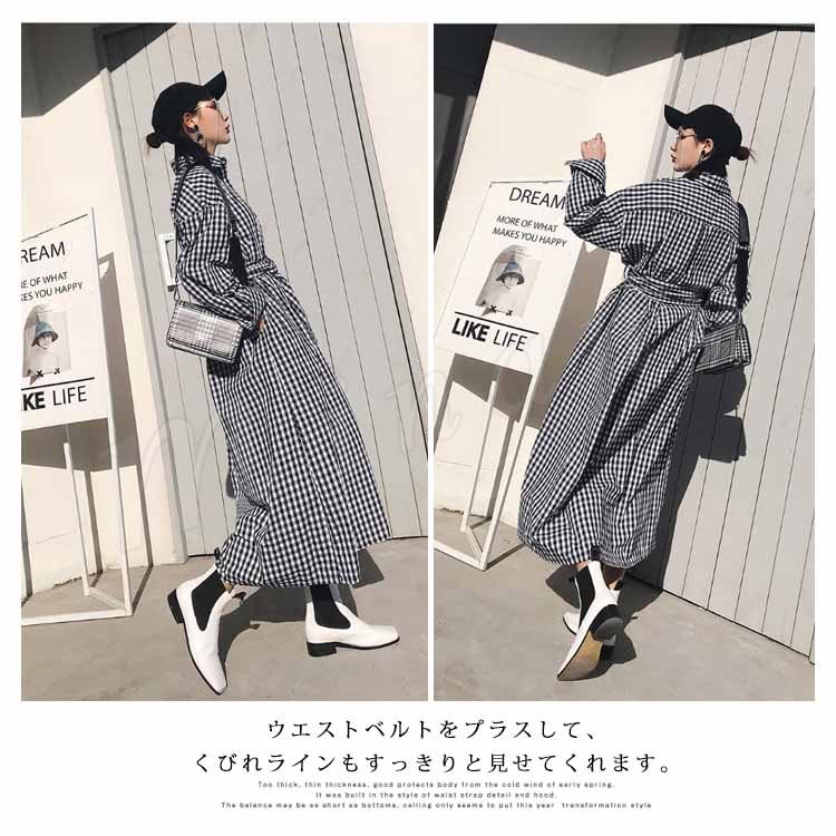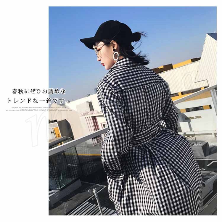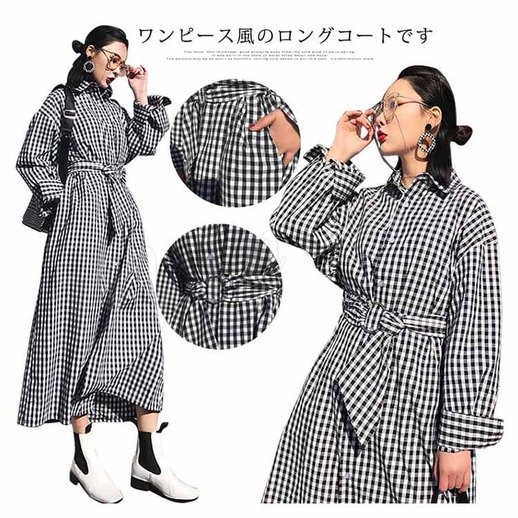 トレンチコート レディース ロングコート チェック柄 ロングトレンチコート マキシ丈 ワンピース風 アウター コート 大きサイズ ゆったり お洒落 女