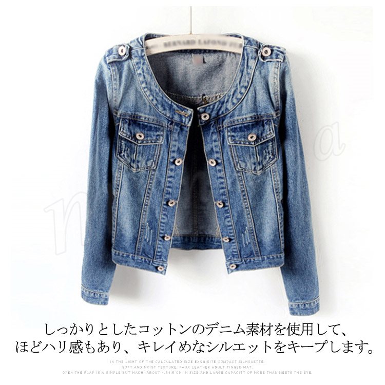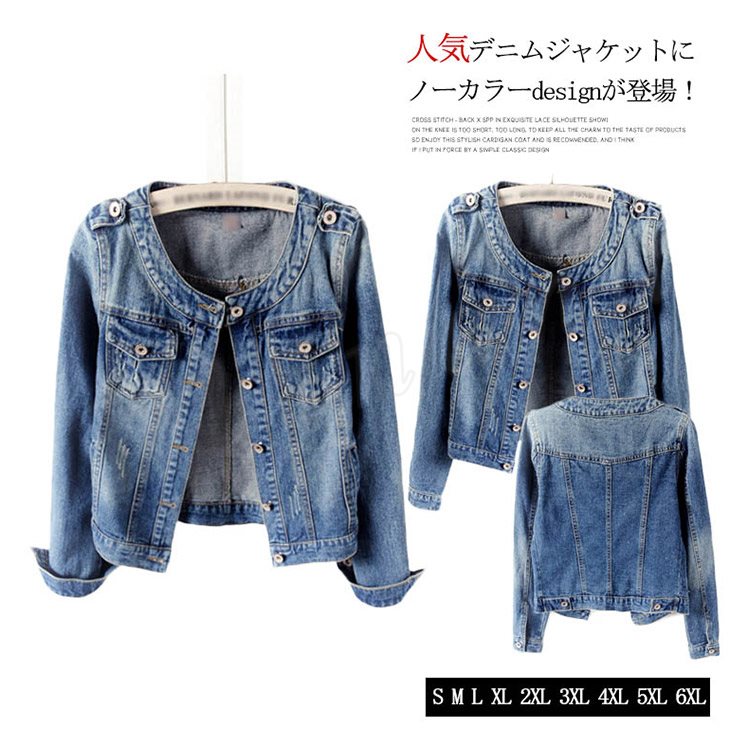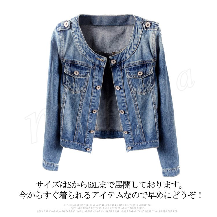 S-6XLサイズ展開!ノーカラーデニムジャケット レディース ジャケット ジージャン 長袖 デニムジャケット ノーカラー 秋ジャケット 大きサイズ
