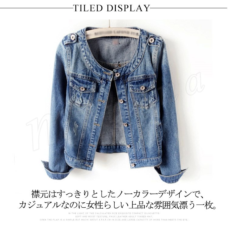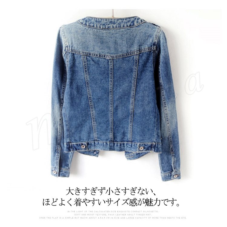 | 人気デニムジャケットにノーカラーdesignが登場! 襟元はすっきりとしたノーカラーデザインで、カジュアルなのに女性らしい上品な雰囲気漂う一枚。 しっかりとしたコットンのデニム素材を使用して、ほどハリ感もあり、キレイめなシルエットをキープします。 大きすぎず小さすぎない、ほどよく着やすいサイズ感が魅力です。 サイズはSから6XLまで展開しております。 今からすぐ着られるアイテムなので早めにどうぞ! | |