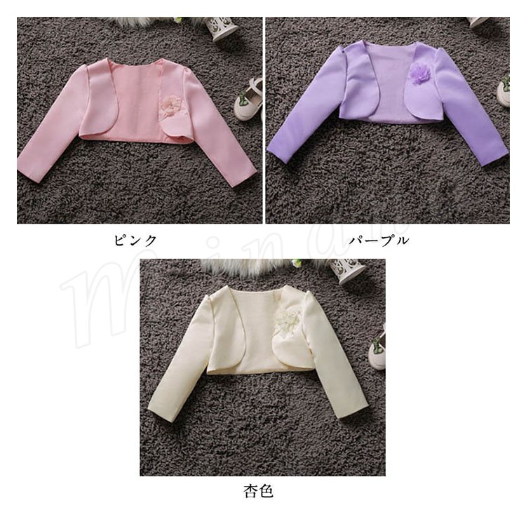 | 素敵でかわいい女の子にぴったりのフォーマルウェアです ワンピースやドレスに羽織って、清楚なフォーマルスタイルに。 薄手ですが張りと光沢があり、ドレスにも好んで使われる、フォーマル感と高級感のある生地です。 お誕生日、発表会、パーティー、結婚式等で活躍します。 | |
