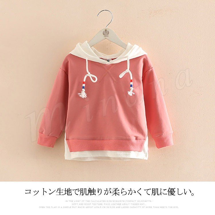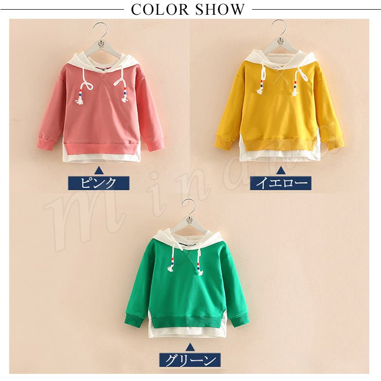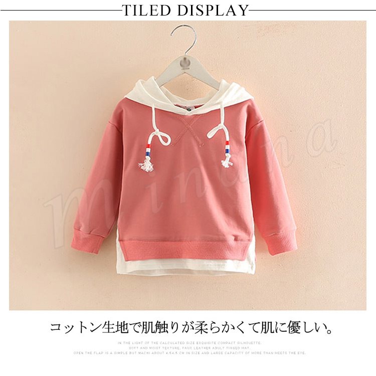 子供服 重ね着風スウェット パーカー トレーナー フード付き 女の子 キッズ 防寒 アウター プルオーバー 春秋冬 ガールズ 可愛い 通園 プレゼント