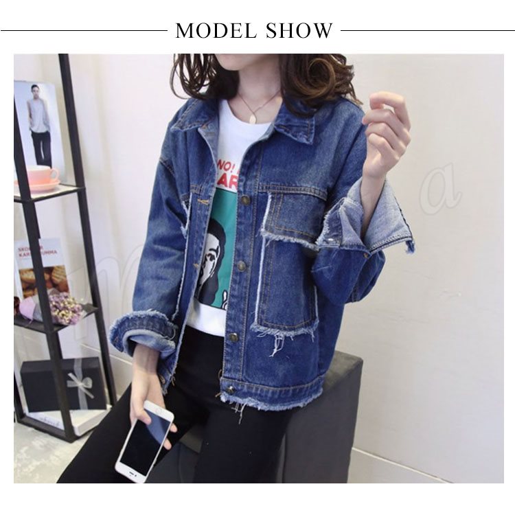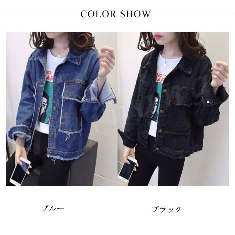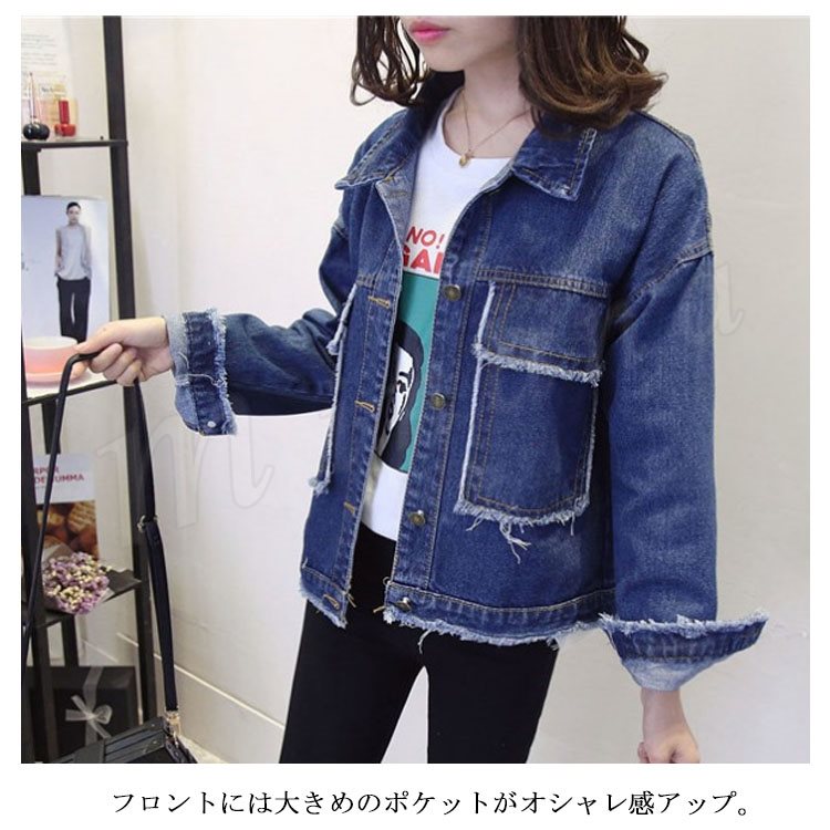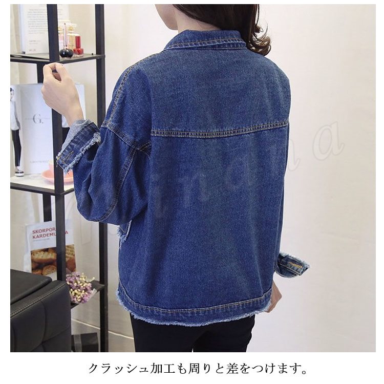 秋物 クラッシュ加工 デニムジャケット レディースアウター デニム ジャケット ジージャン Gジャン 通学 カジュアル 長袖 春 秋