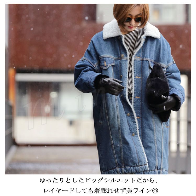 | 昨年大人気アウター今年も登場しました。 こなれ感ただよう、今季らしい裏ボア付きのデニムコートです。 ゆったりとしたビッグシルエットだから、レイヤードしても着膨れせず美ライン◎ 綿素材特有の、着るごとにこなれた風合いへ。 かっちりしたイメージのチェスターコートをデニム素材にすることで、どんなコーデにも合う使いやすいアイテムです♪ やや肩の落ちたオーバーサイズのデザインなので、ゆるっとしたシルエットが可愛い。 デイリーコーデに羽織るだけでこなれ感プラスする一枚。 | |