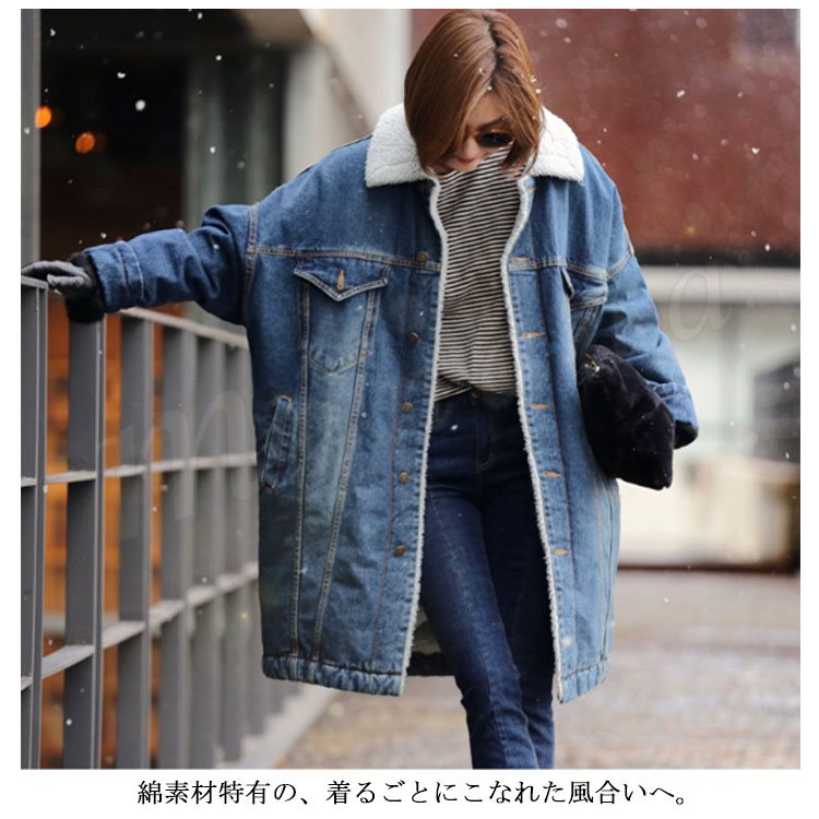 昨年も今年も大人気!デニムジャケット ロングコート レディース ジージャン 裏ボアデニムジャケット ロング丈ジャケット ロングデニムコート 裏ボアコ