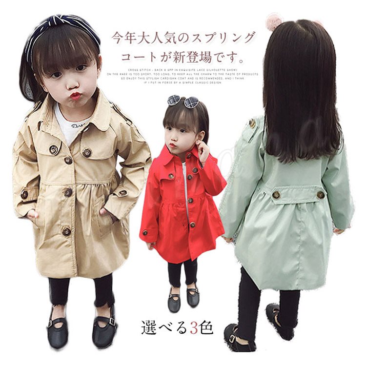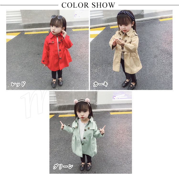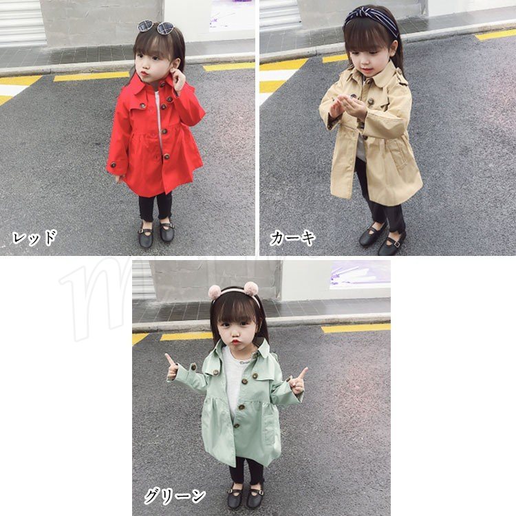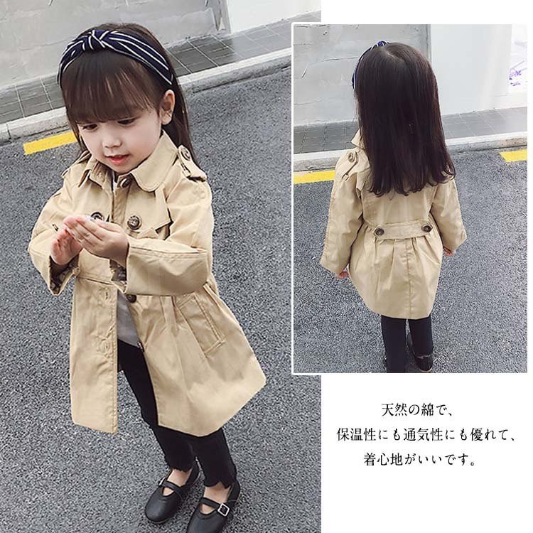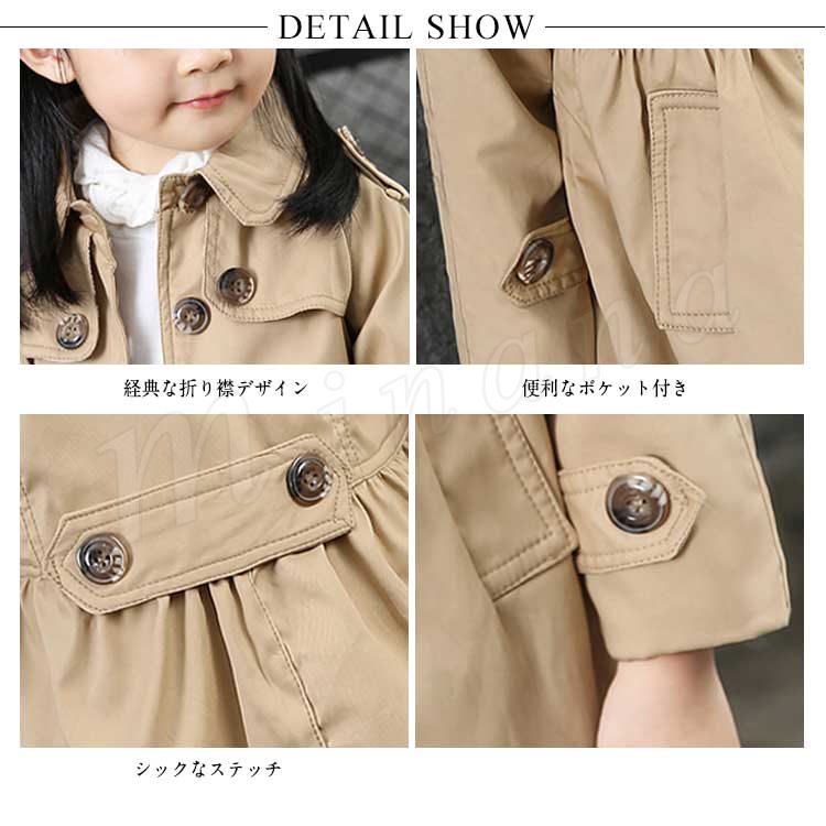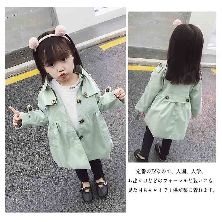 子供服 スプリングコート ウインドブレーカー レンチコート 女の子 ガール キッズ 長袖 無地 ジャケット 春 秋 キッズ 子供服 アウター オシャ
