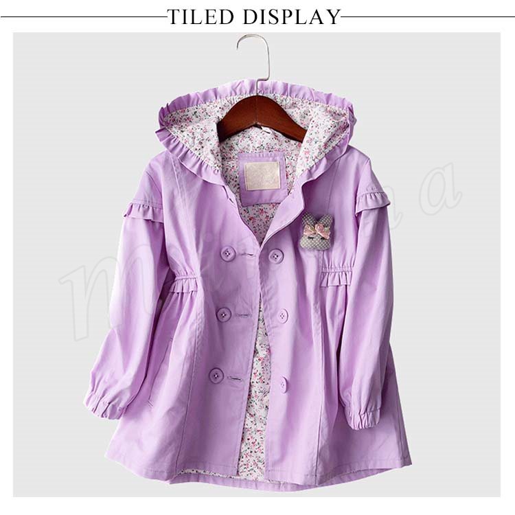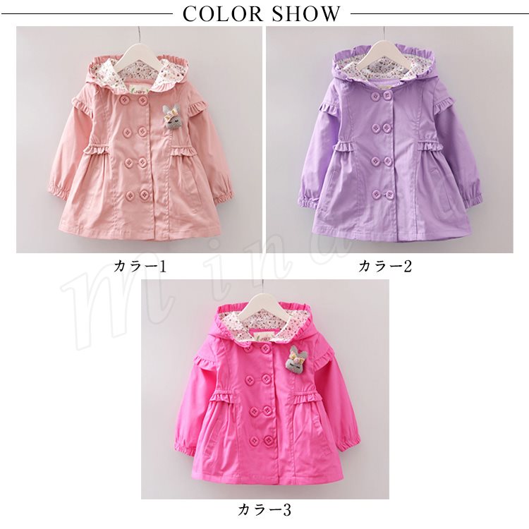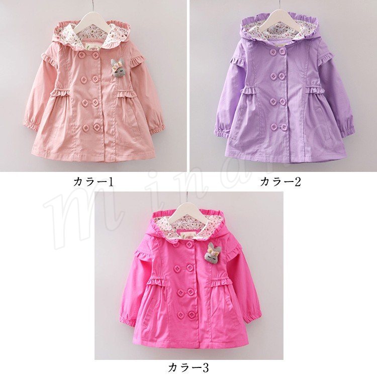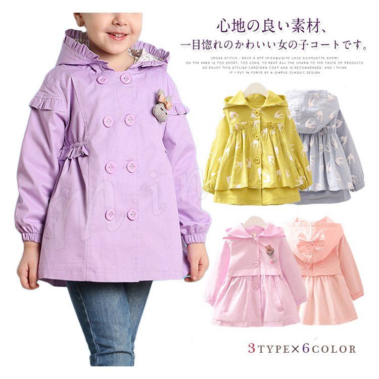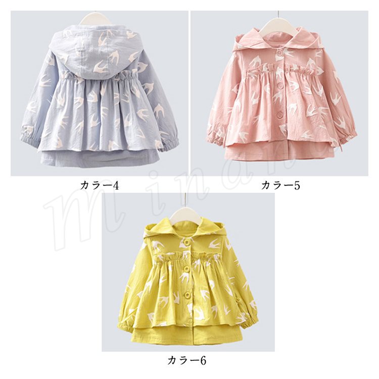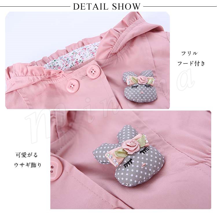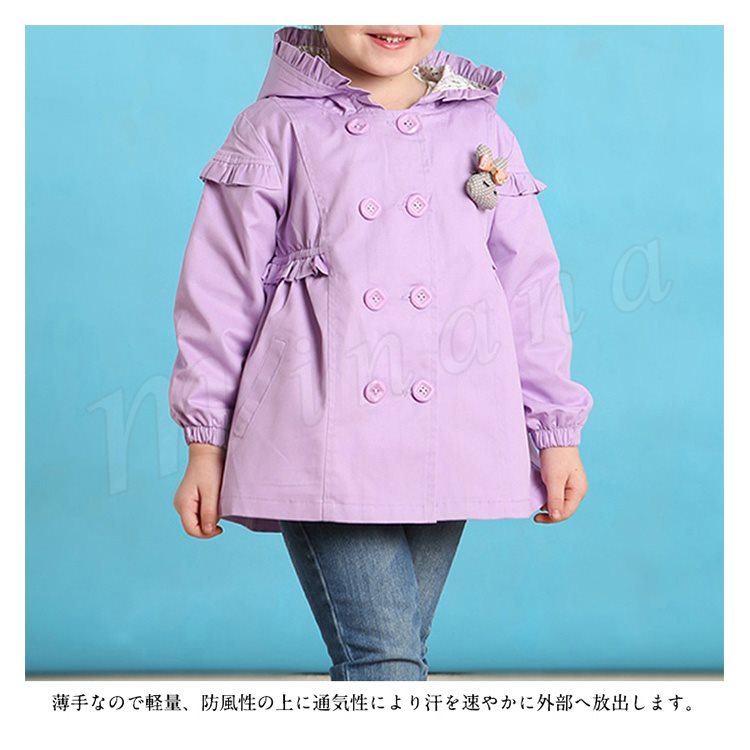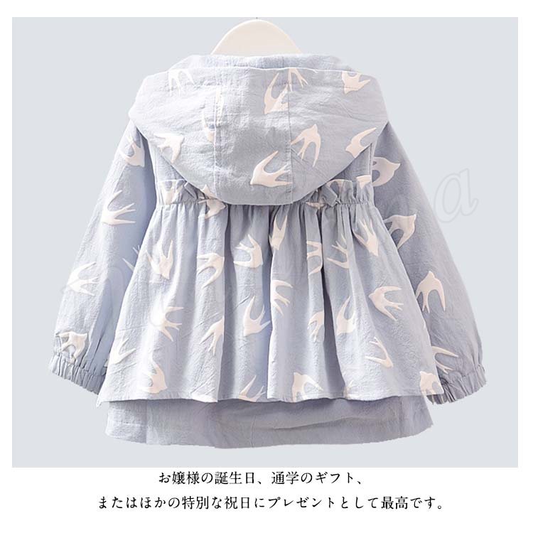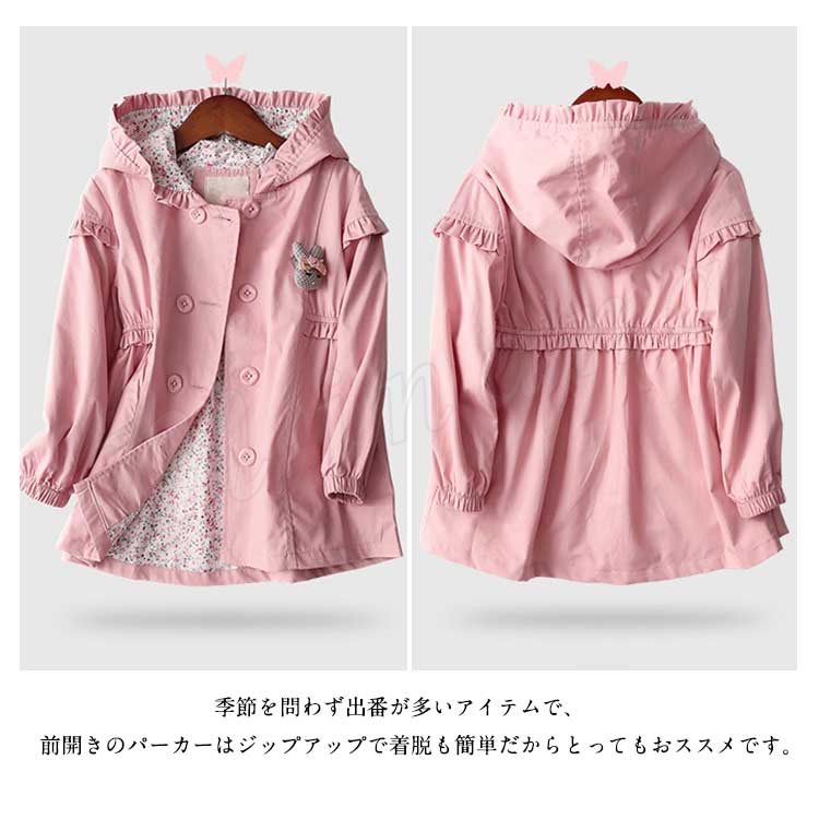 子供服 スプリングコート ウインドブレーカー 女の子 フード付き 長袖 花柄刺繍 キッズコート 子供コート キッズ服 女の子服 防寒防風 通園 通学