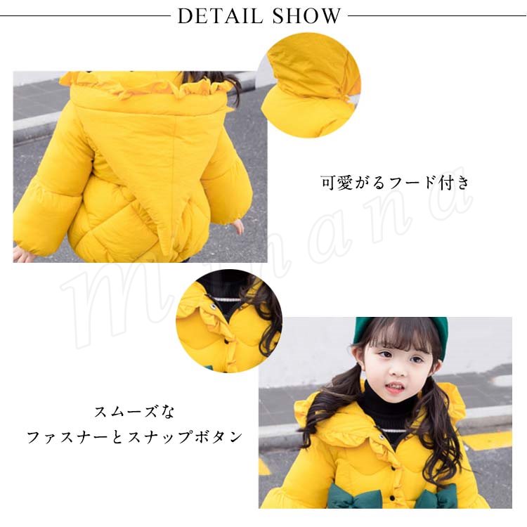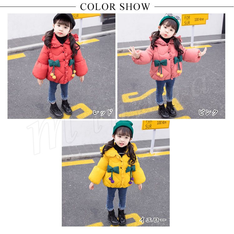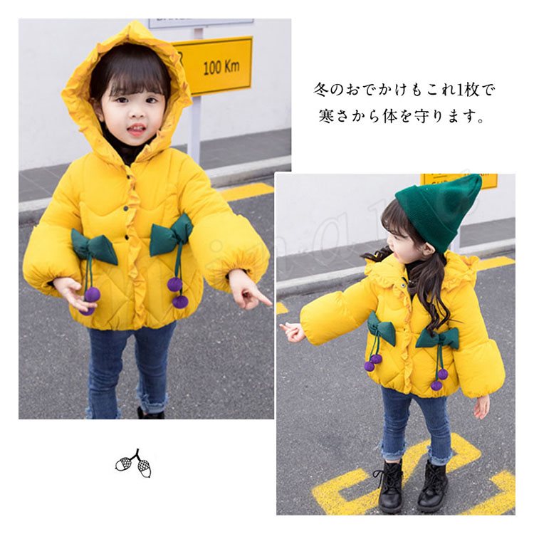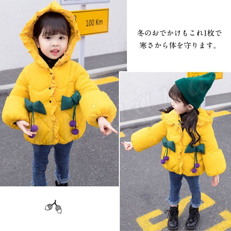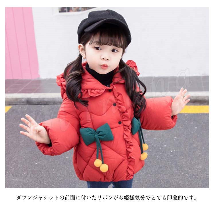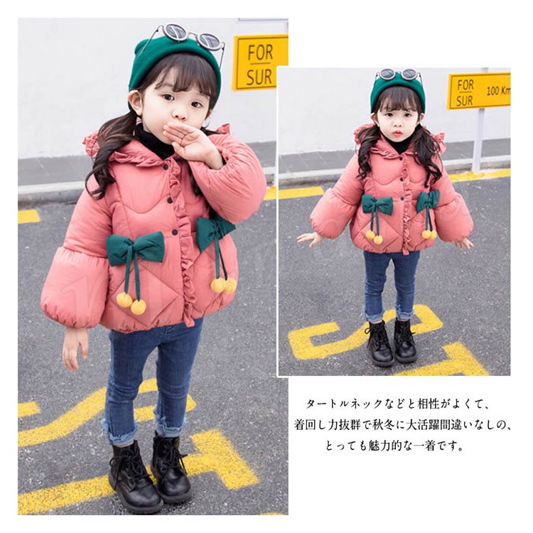 子供服 中綿コート ダウンコート 綿入れコート 女の子 フード付き リボン付き キッズ ダウンジャケット アウター 厚手 中綿 女児 女の子 子供服