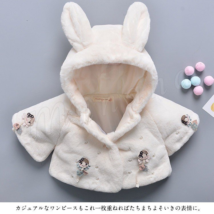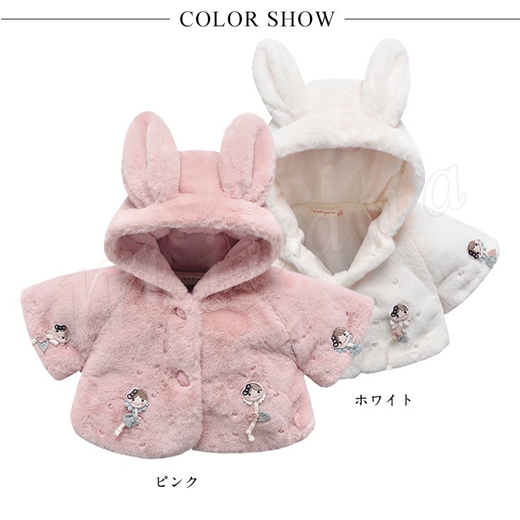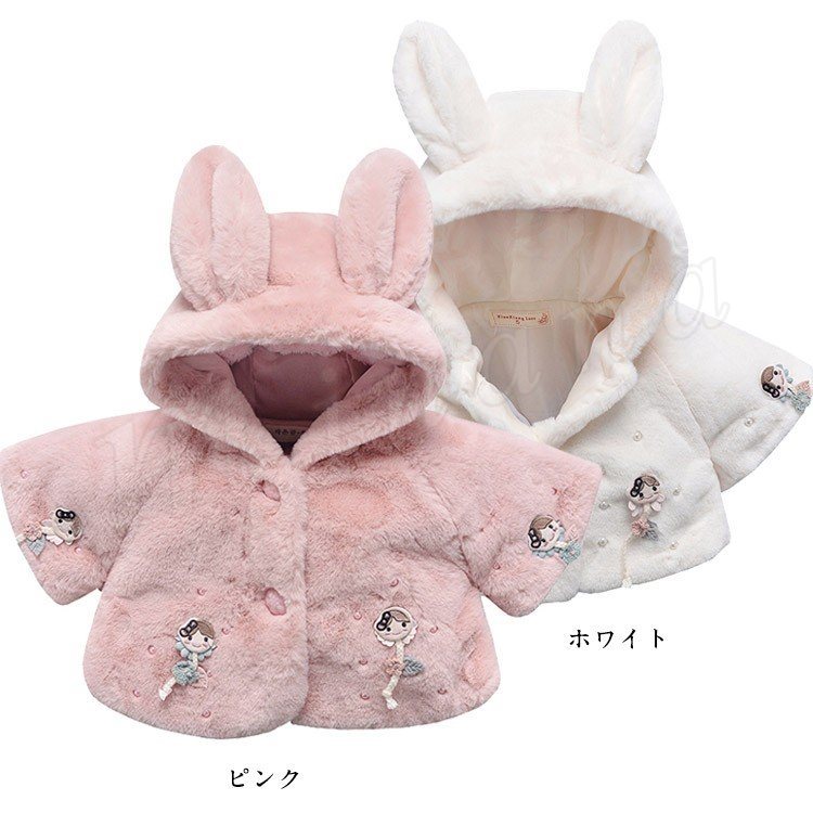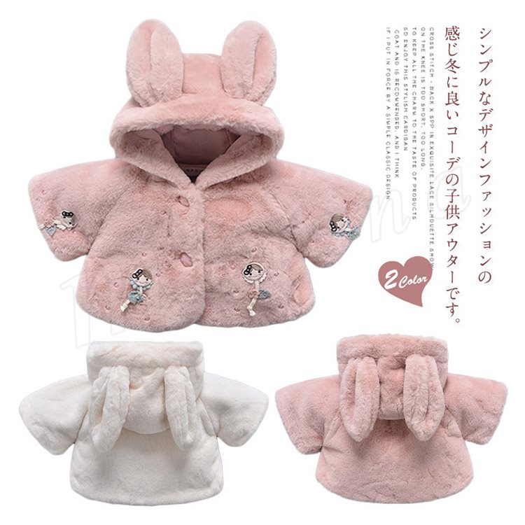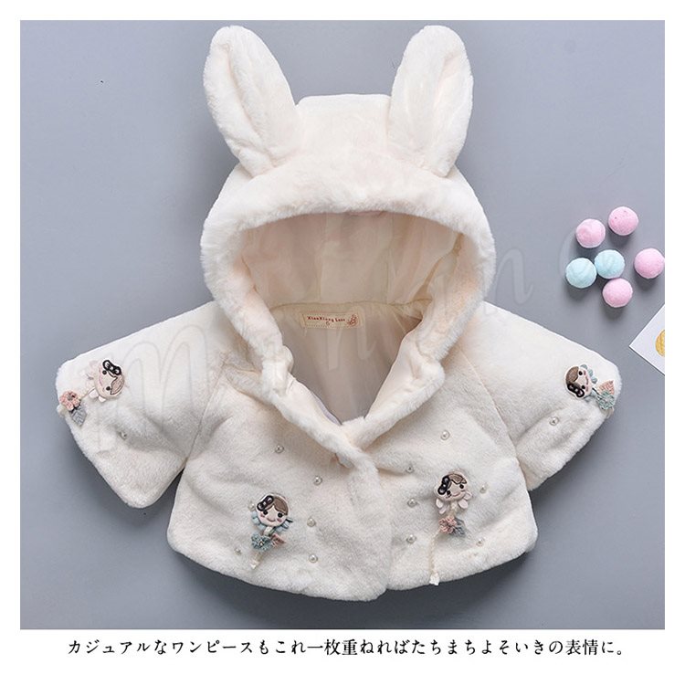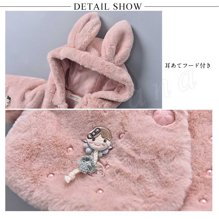 子供服 ファーコート フェイクファー 裏起毛 フード付き 尻尾 兎の耳 ふわふわ コート 女の子 きれいめ キッズ ジュニア 秋冬 キッズ コート