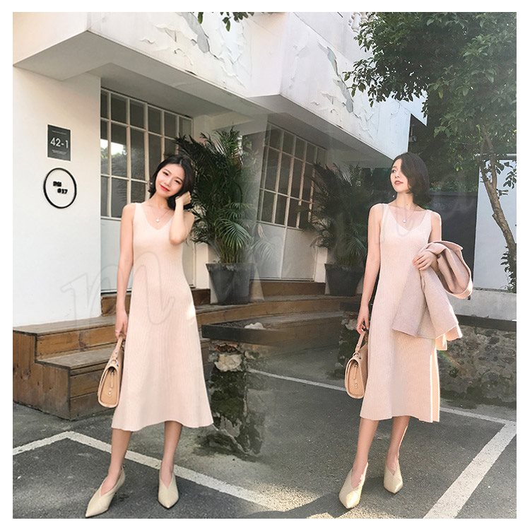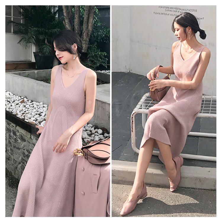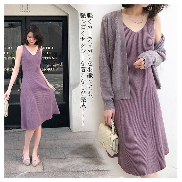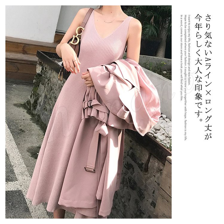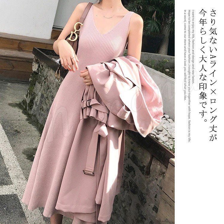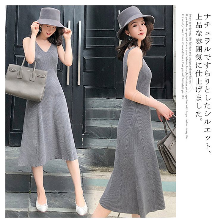 キャミワンピ ニットワンピース Aラインワンピース ワンピース ミモレ丈 レディース フェミニン ノースリーブ 上品 エレガント オシャレ
