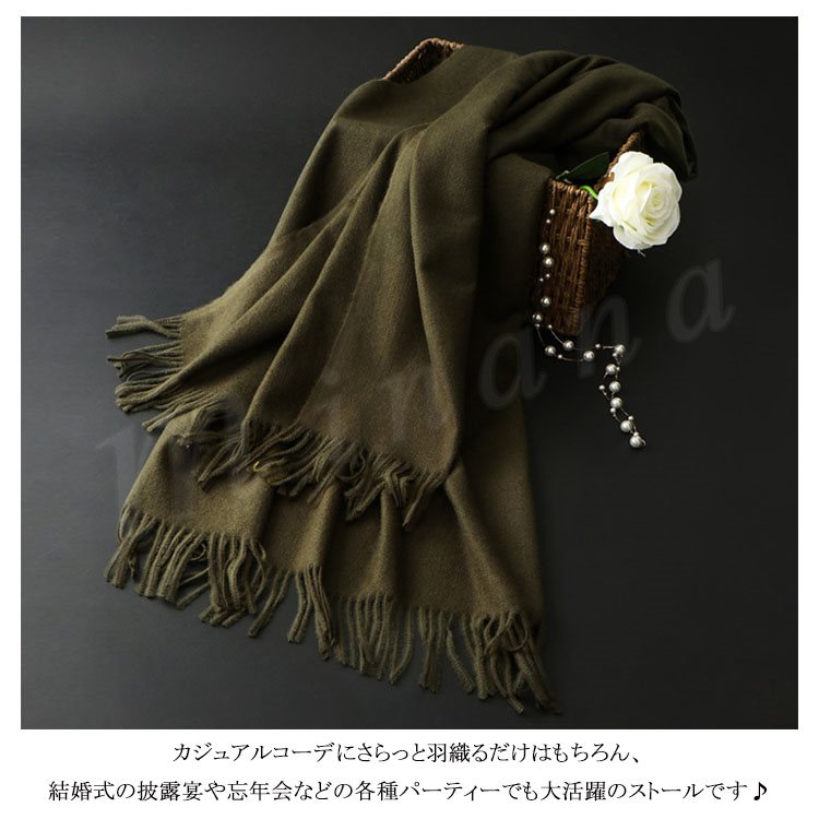 | ふんわりとした柔らかな肌ざわりが魅力的なストールです。 たっぷりと効かせたフリンジがこなれた表情をみせてくれます。 豊かなカラーバリエーションで、コーデに合わせてそろえておきたい! カジュアルコーデにさらっと羽織るだけはもちろん、結婚式の披露宴や忘年会などの各種パーティーでも大活躍のストールです♪ | |