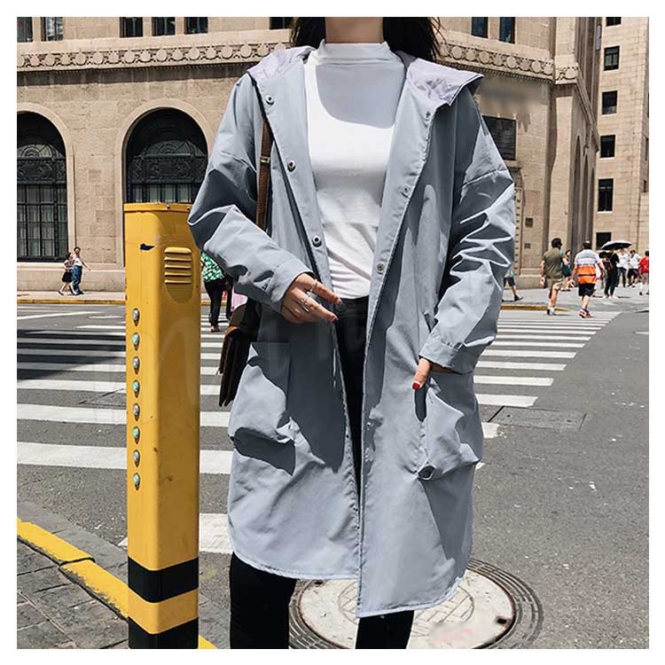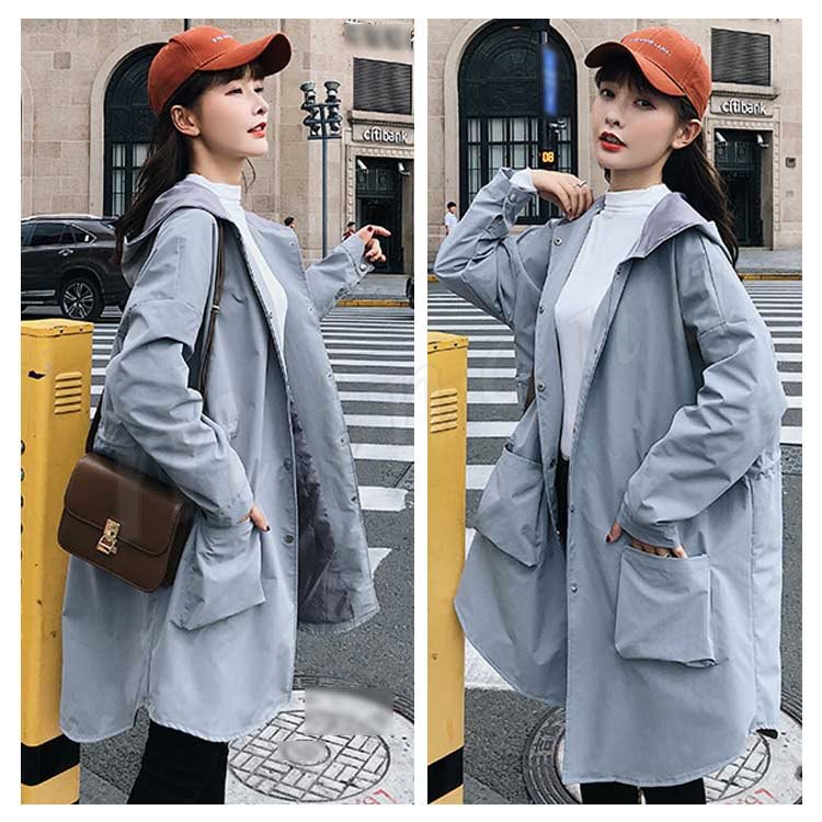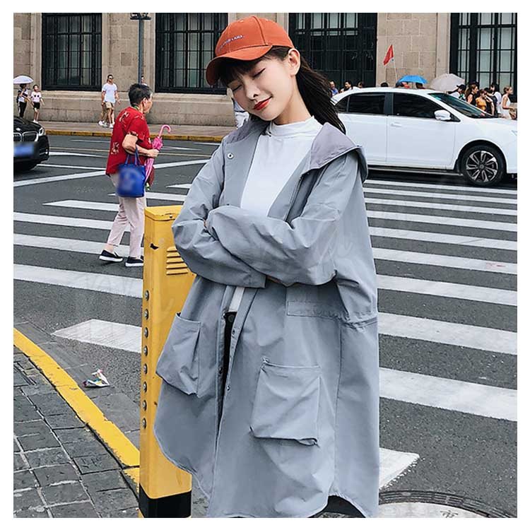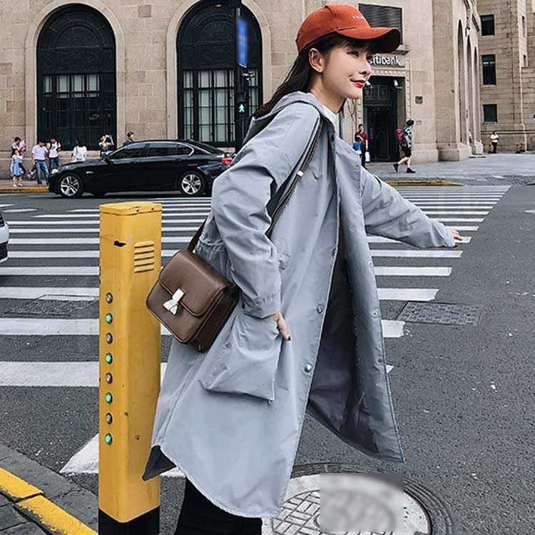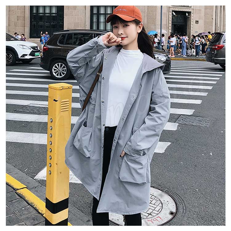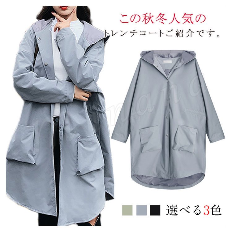 トレンチコート ロングコート スプリングコート レディース ゆったり フード付き アウター 大きいサイズ 大人 秋冬 長袖 体型カバー 無地 通勤 b