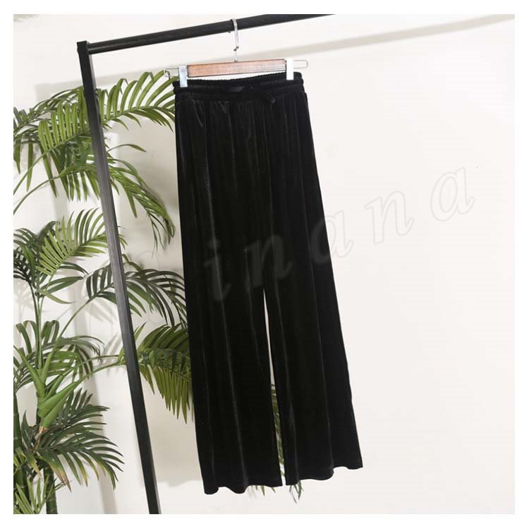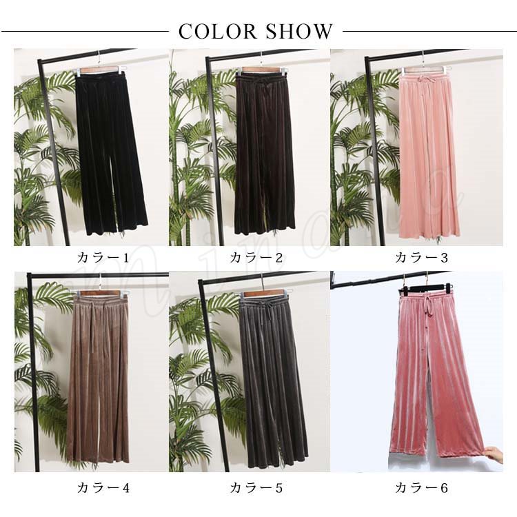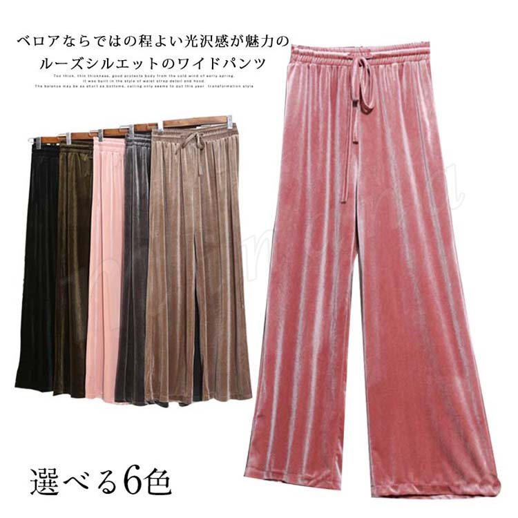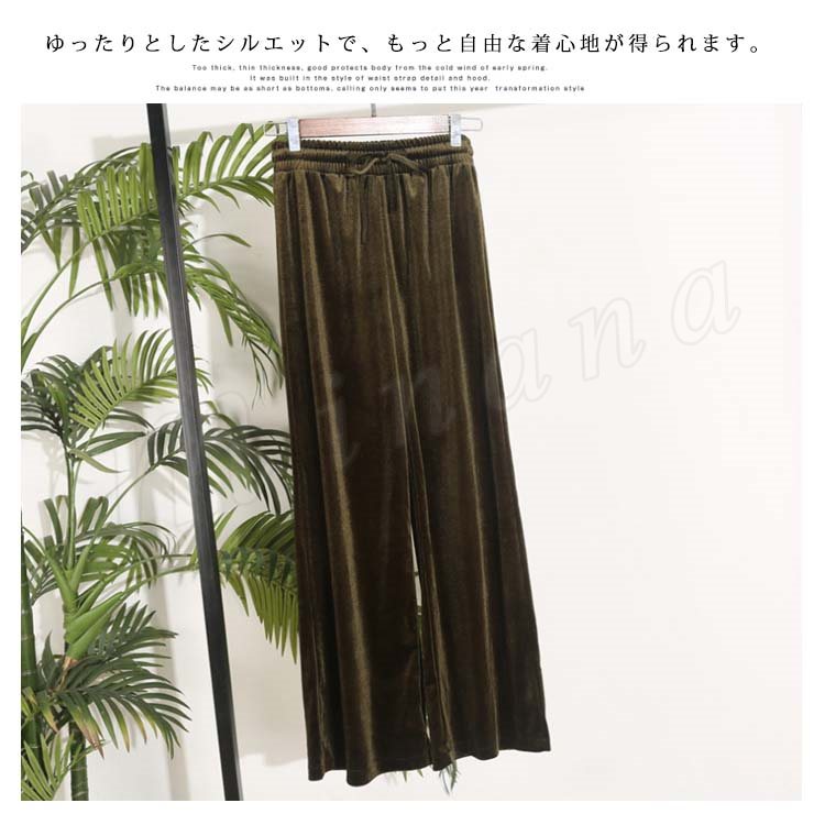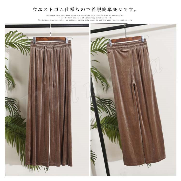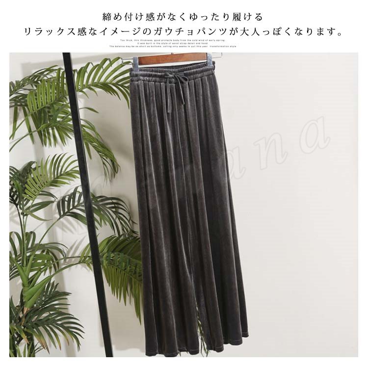 ベルベット ワイドパンツ ガウチョパンツ レディース ロングパンツ レトロ ハイウエスト ゆったり 着痩せ スリム カジュアル ベロアパンツ きれいめ