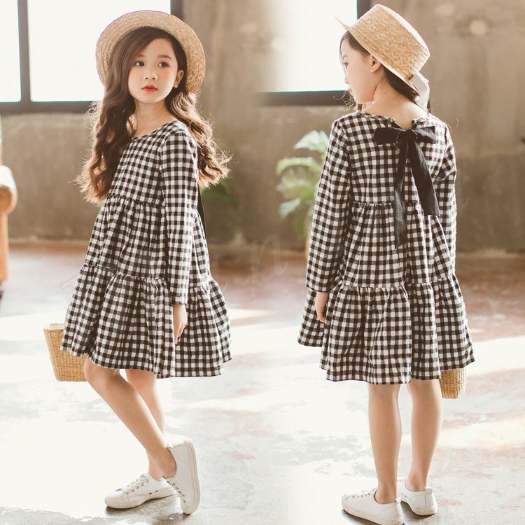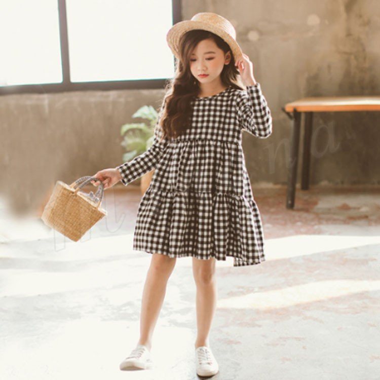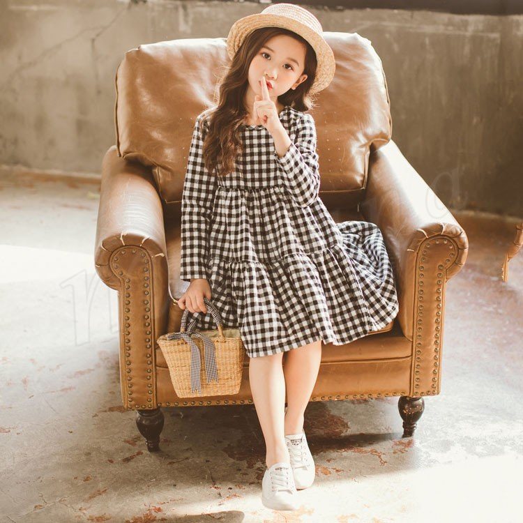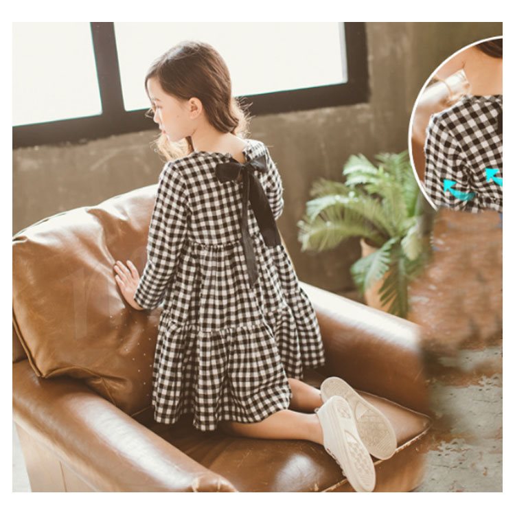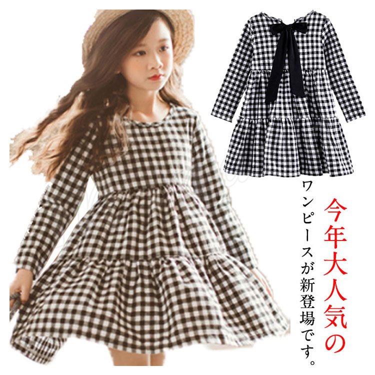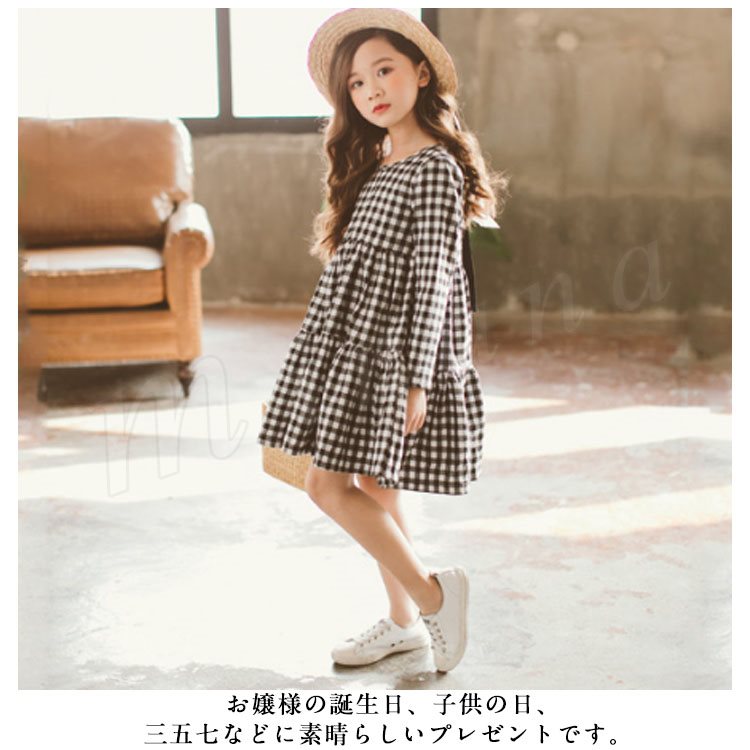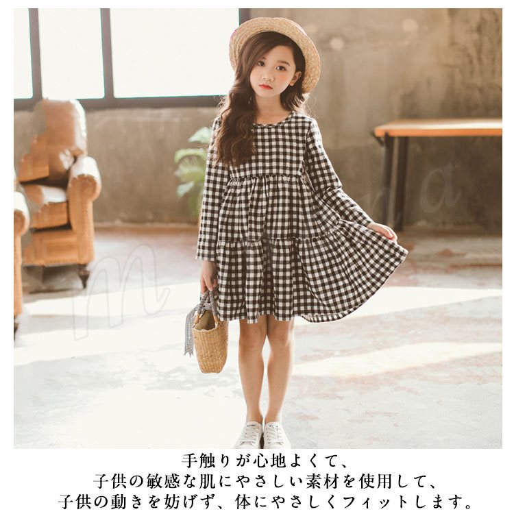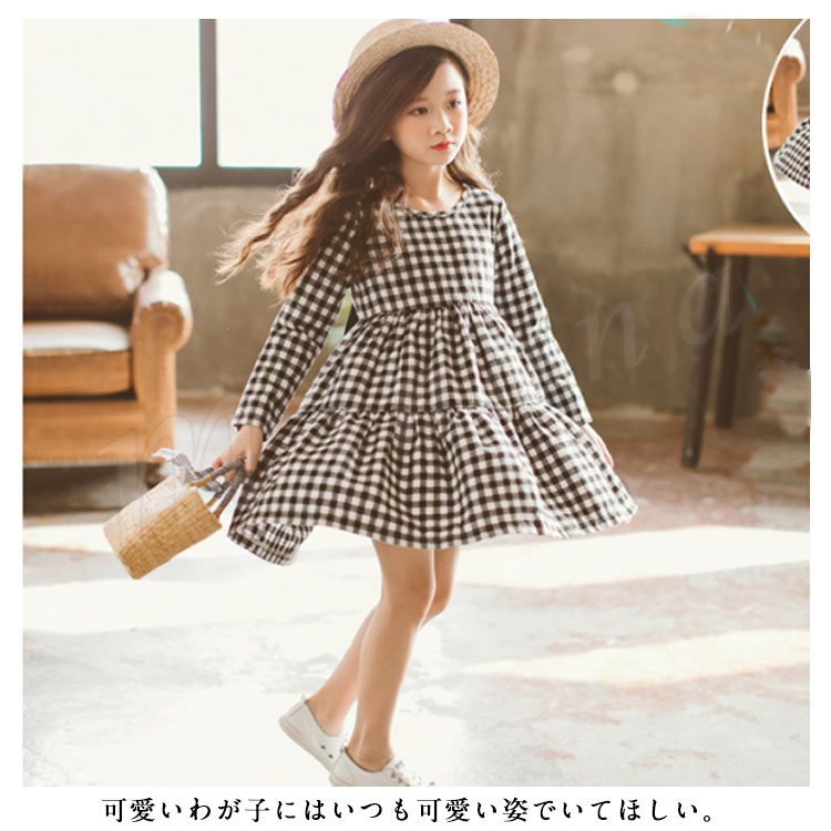 子供服 ワンピース フレアワンピース チェック柄 チュニック 膝上丈 キッズ 女の子 長袖 クルーネック 韓国子供服 可愛い ゆったり 新作 110