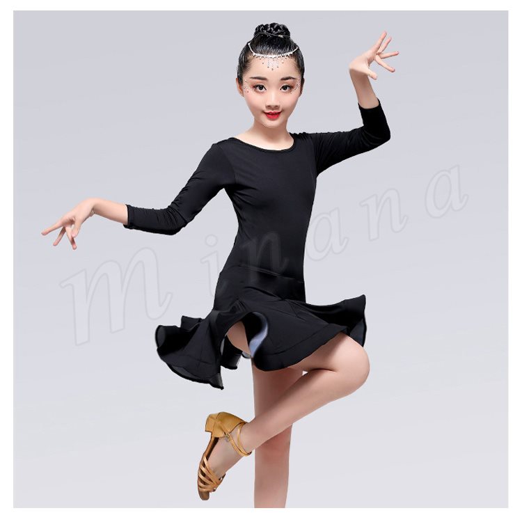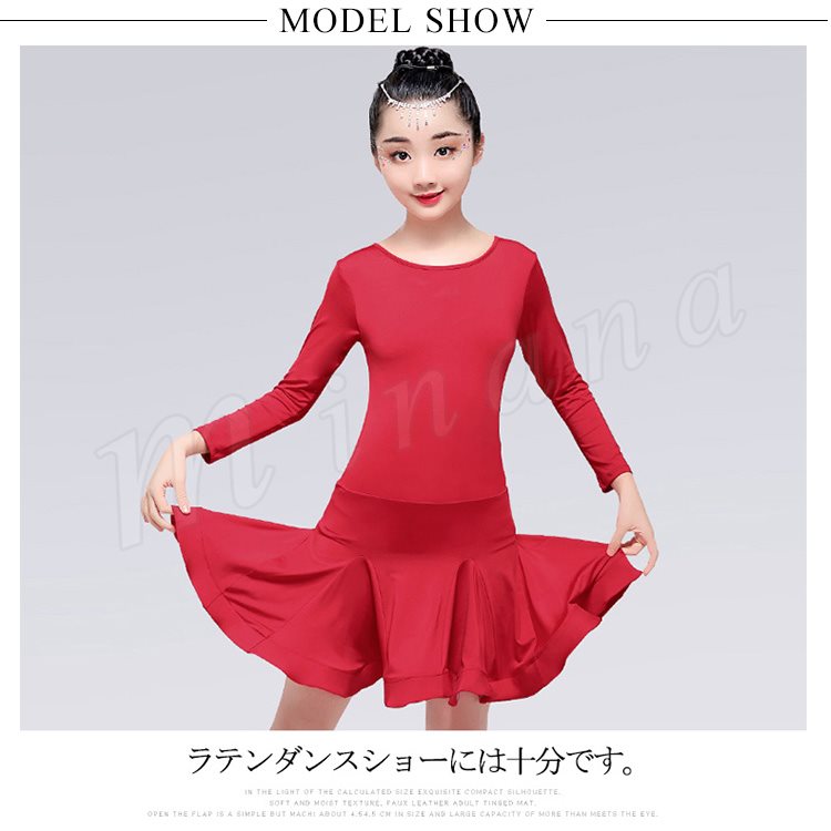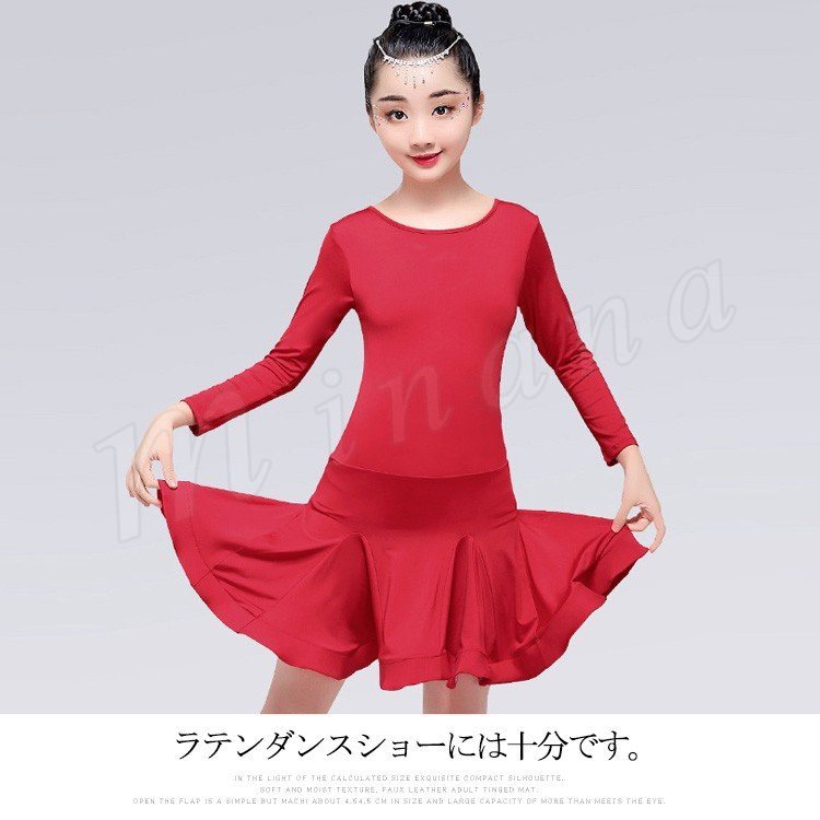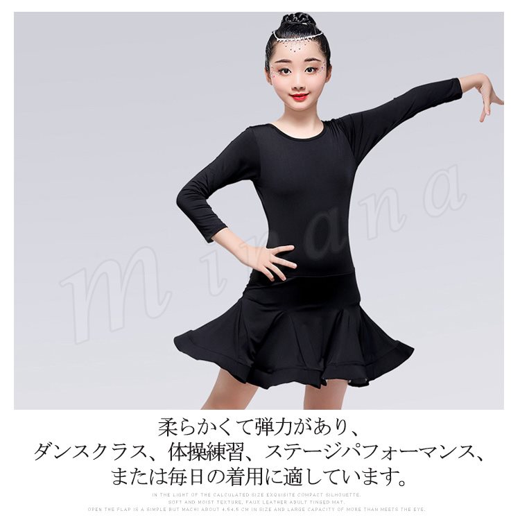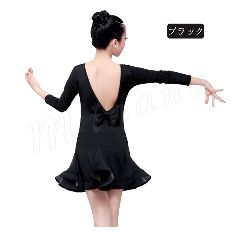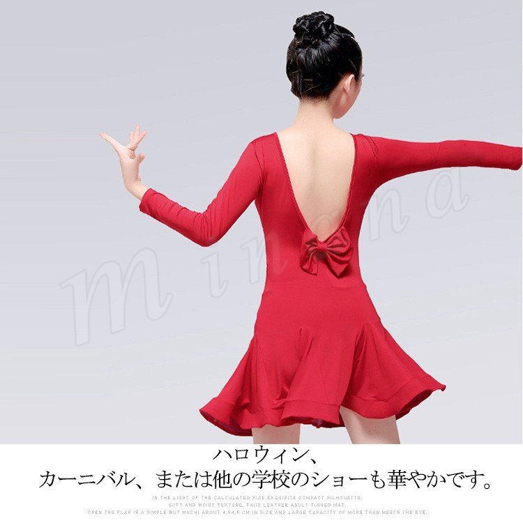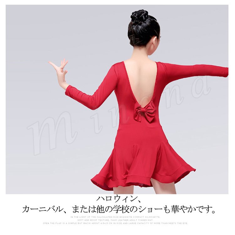子供ダンスワンピース キッズダンス衣装 演出服 ワンピース 可愛い ジュニア ステージ ラテン 女の子 子供ダンス服 長袖 ラテンダンス 発表会用ドレ