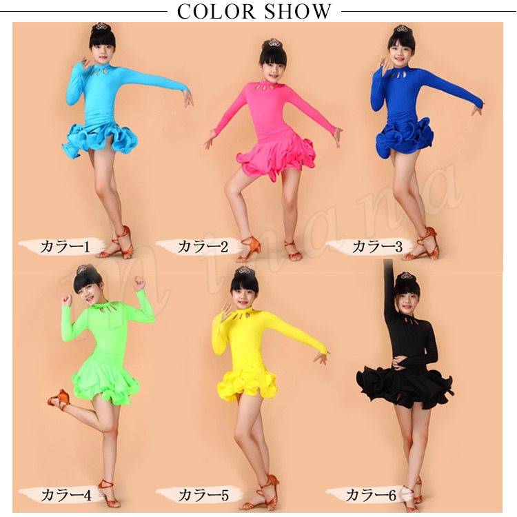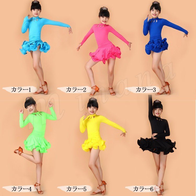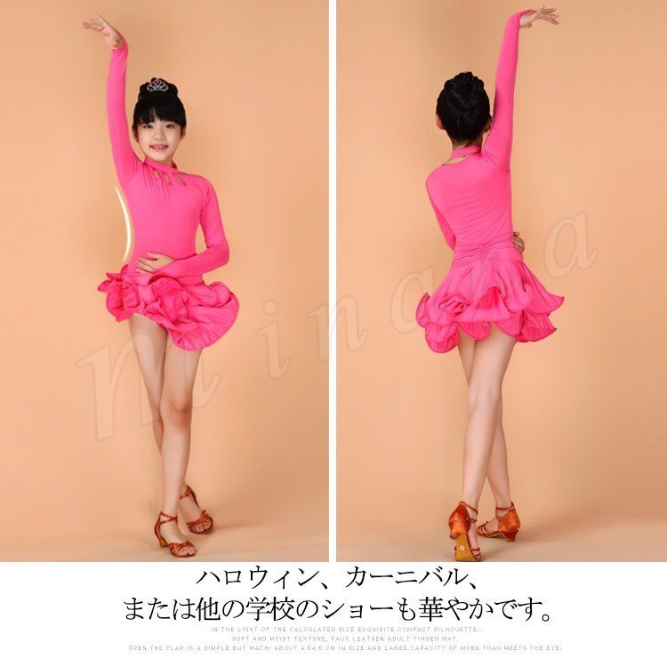 子供ダンスワンピース 女の子 子供ダンス服 長袖ラテンダンス 発表会用ドレス ワルツ ラテン系 ダンスドレス ラテンワンピース 社交ダンスドレス衣装