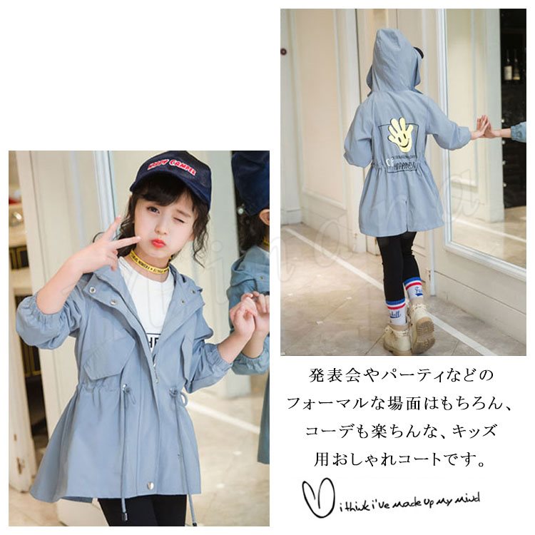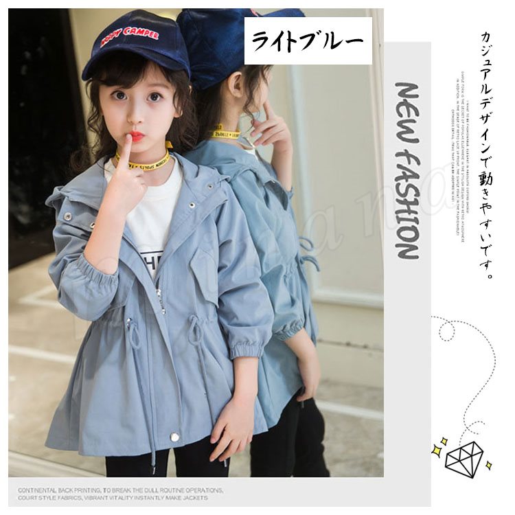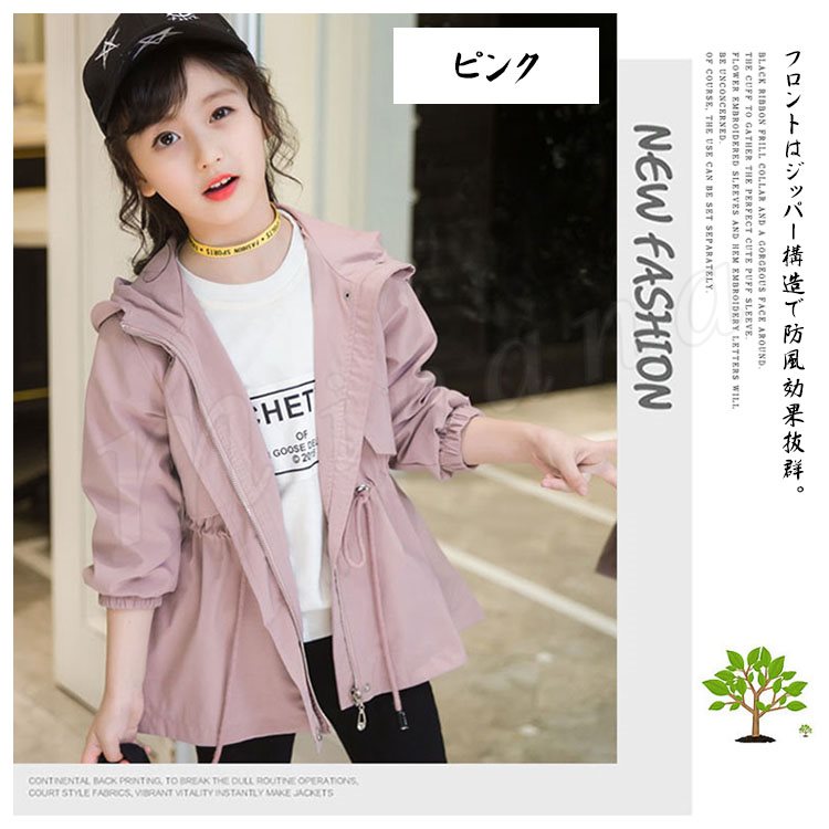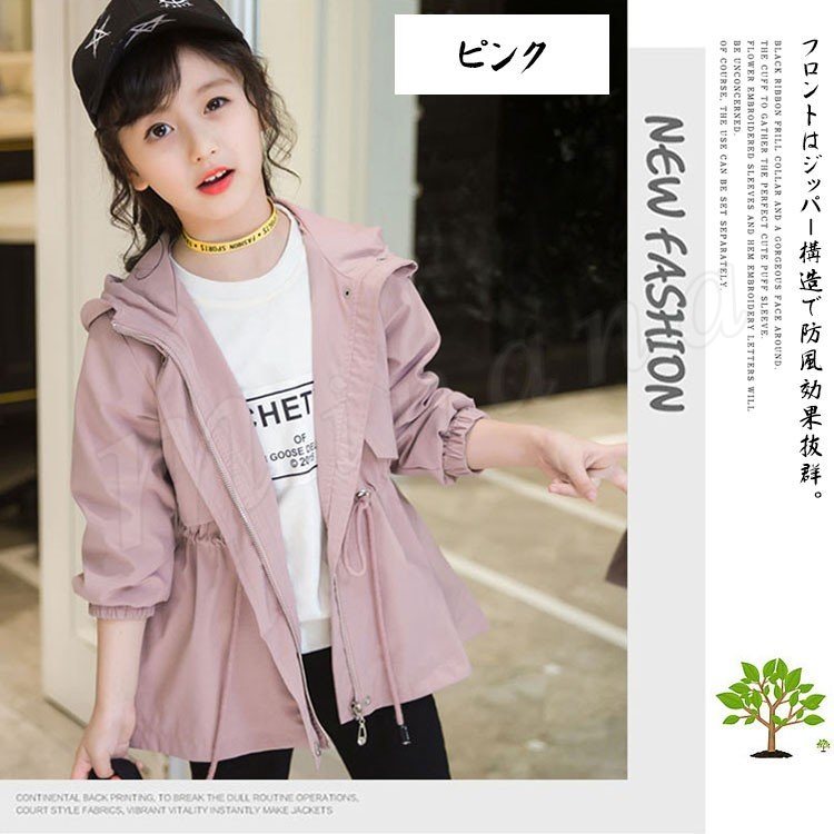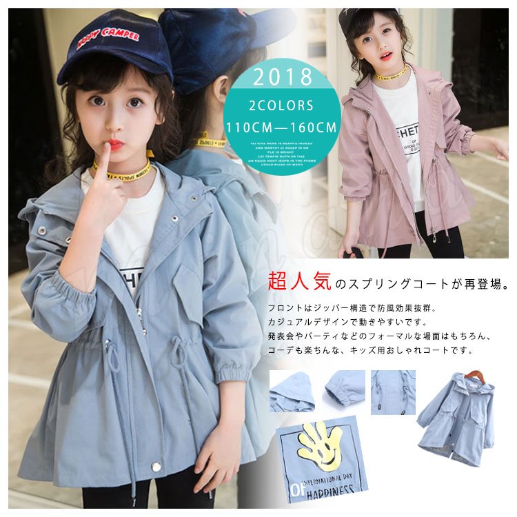 子供服 スプリングコート 女の子 アウター 上着 ジップアップパーカー ウィンドブレーカー 子供コート フード付き 110cm 120c