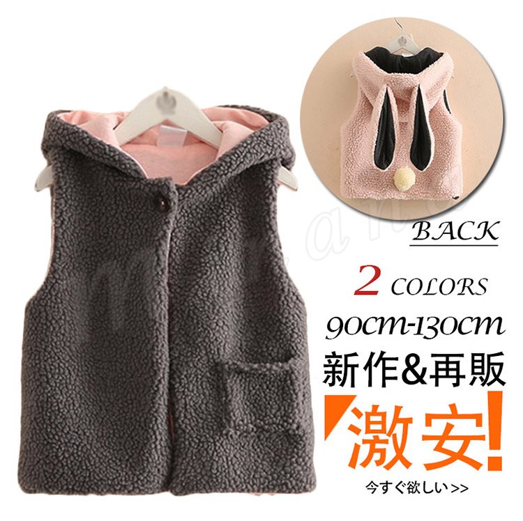 リバーシブル ボア コート ノースリーブ 可愛いうさぎ耳付き ふわふわ コート マシュマロボア ベビー 子供 キッズ 子供服