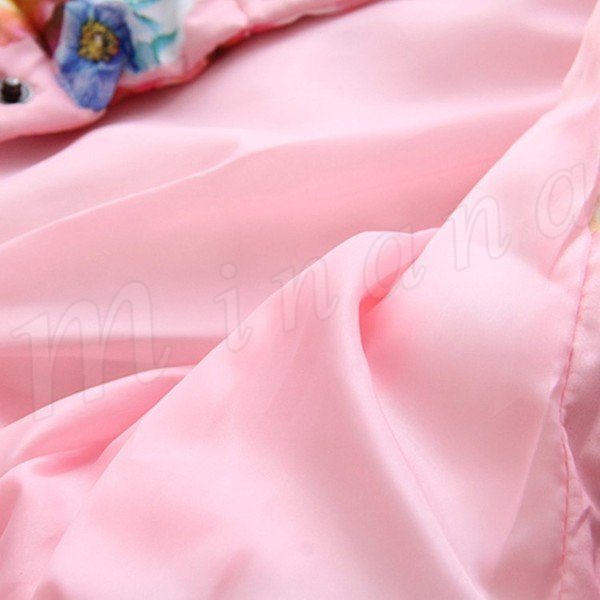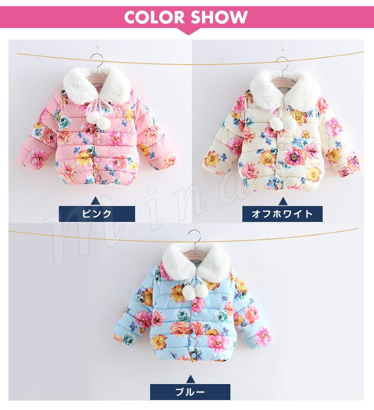 子供 長袖 ダウンジャケット 折襟 中綿 花柄 ファーネック 毛玉飾り ショート丈 前開き 襟あり アウター コート 2015新作 お出かけ