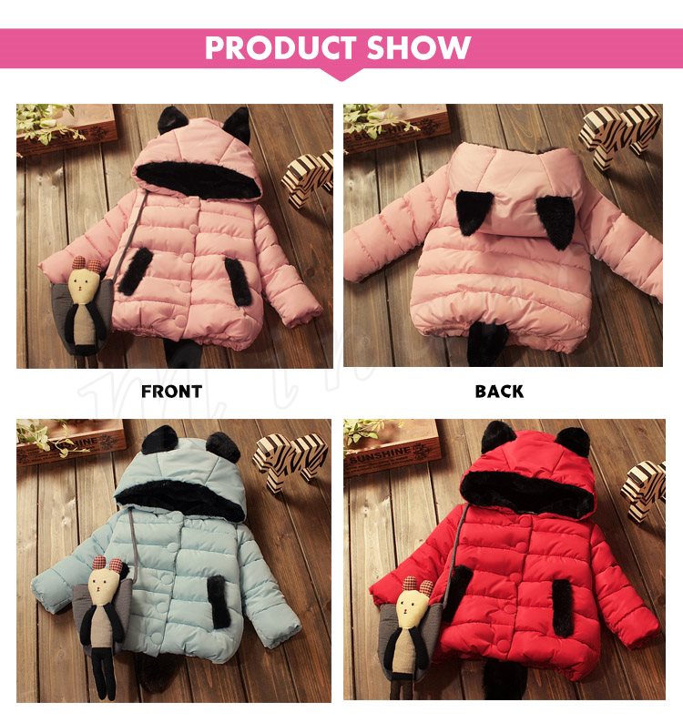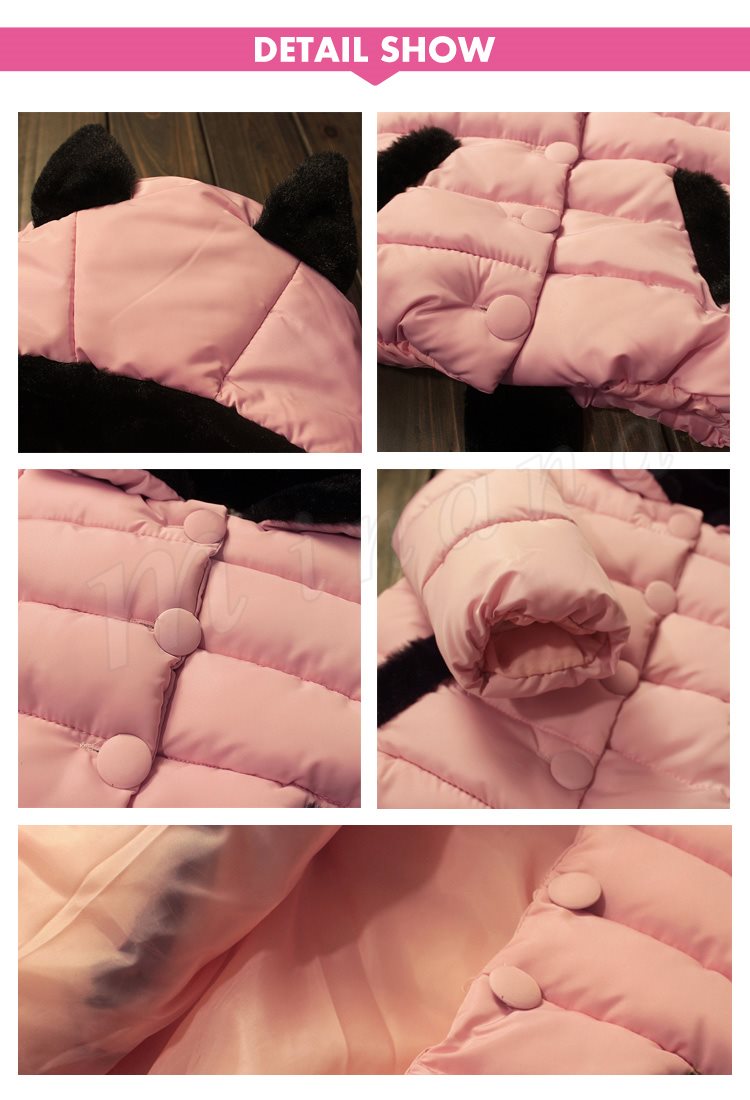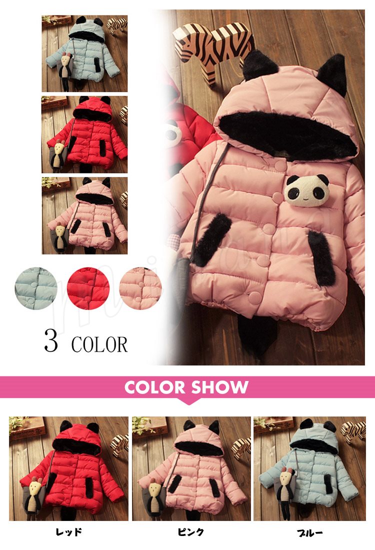 送料無料子供アウター 中綿入りコート ジャケット キッズ 中綿 厚地 パンダ飾り 耳飾りフード 無地 ショートコート トップス 上着き 防寒