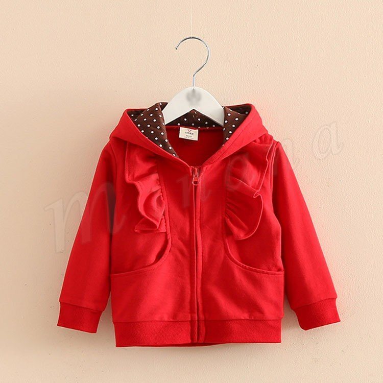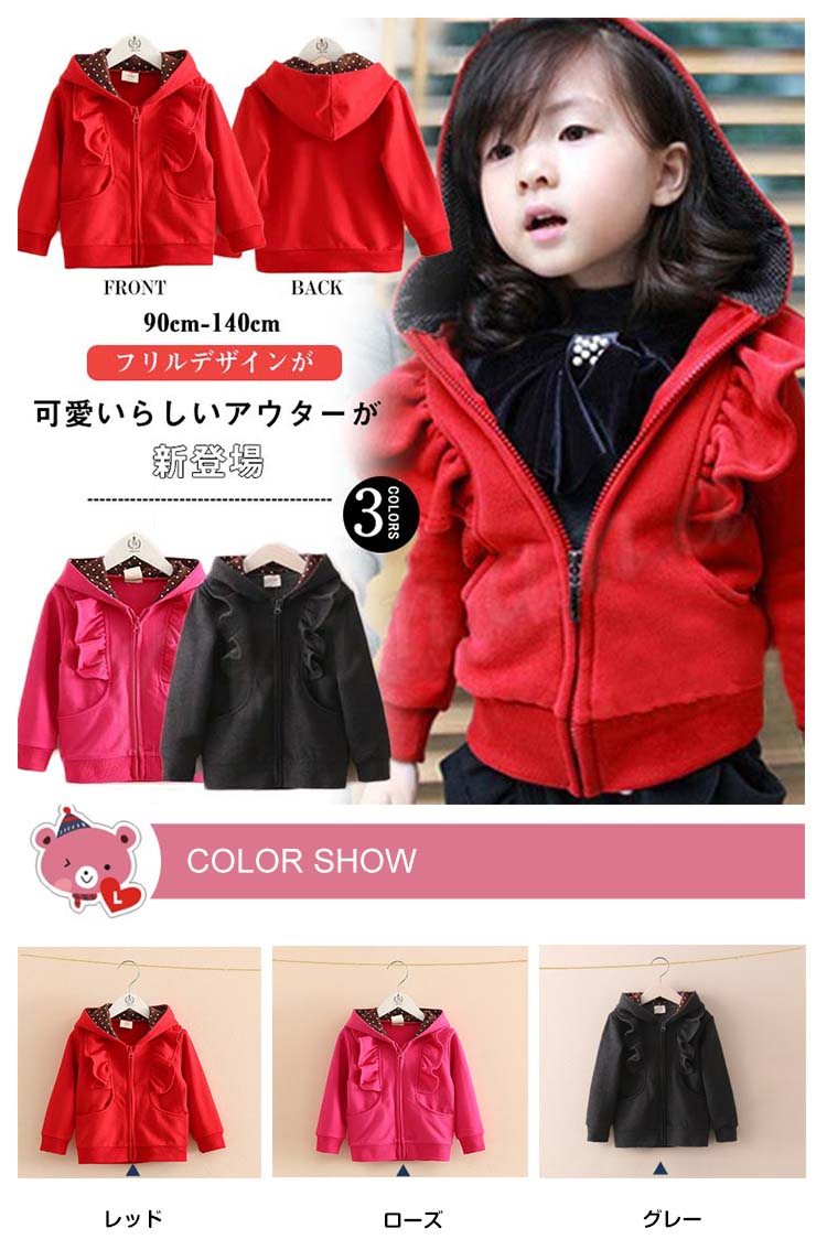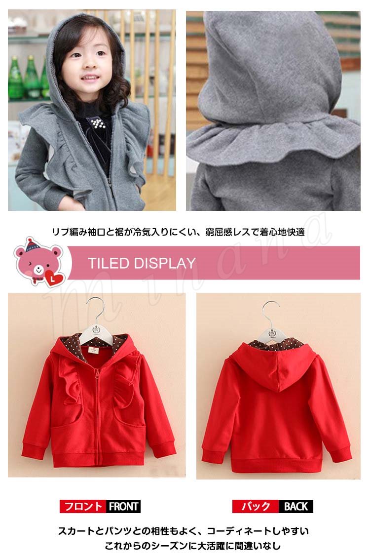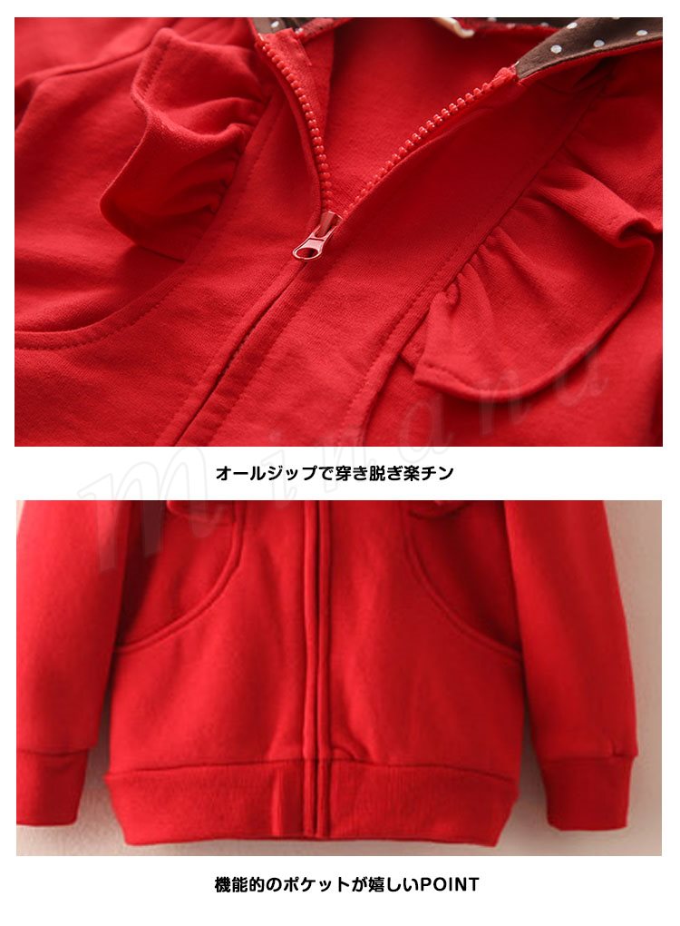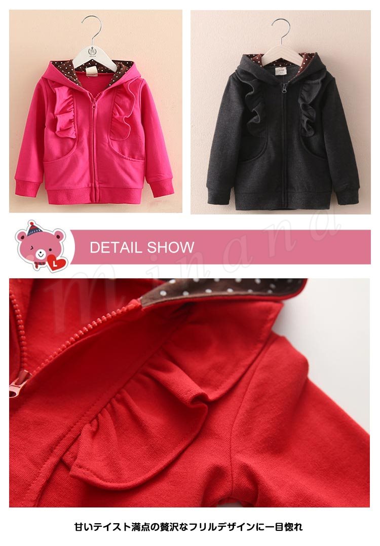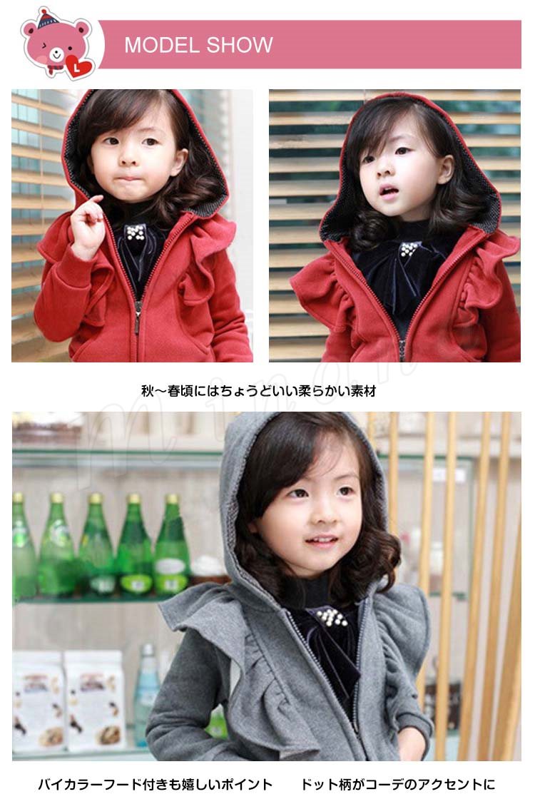キッズ アウター ジップアップ ジャケット ショートコート パーカ 無地 フリル スプリングコート 長袖 裏ドット柄 女の子 子供 カラップ