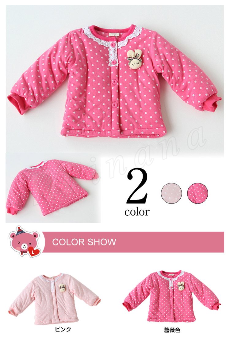 送料無料フリルレース ベビー用 中綿コート ジャケット 女の子 水玉柄 ドット柄 あったか パーカー ベビー 子供 コート ベビー服 赤ちゃん 中綿