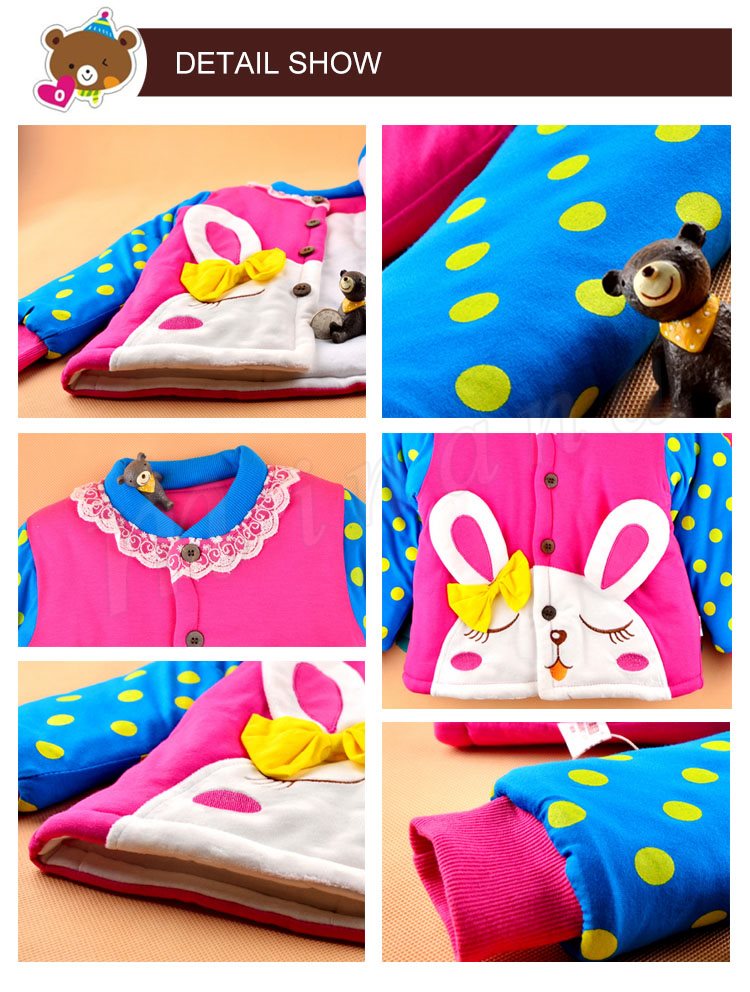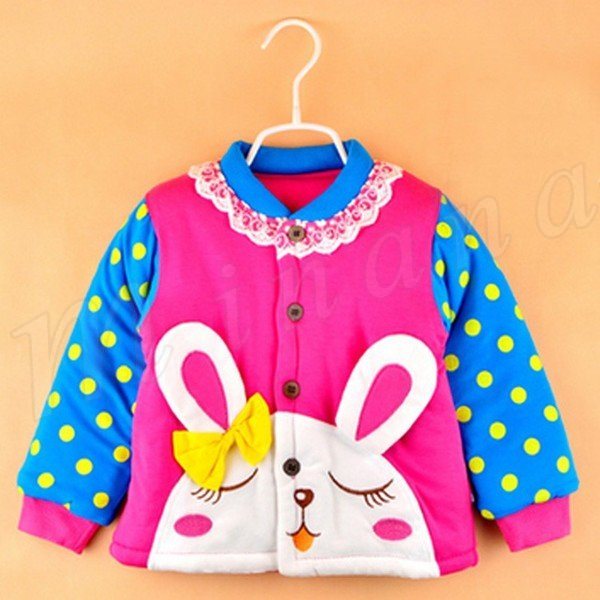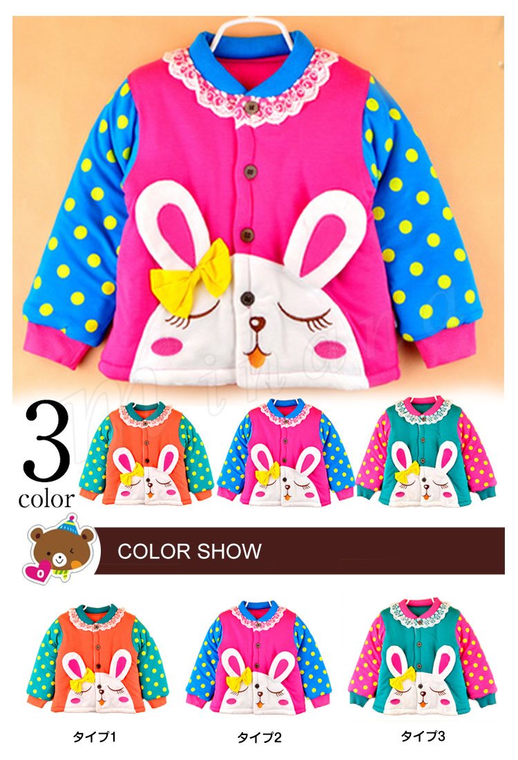 送料無料新生児 アウター 中綿入れコート 厚地 動物 カートーン キュート うさぎ リボン飾り ドット 水玉 レース飾り ショート丈 キッズ
