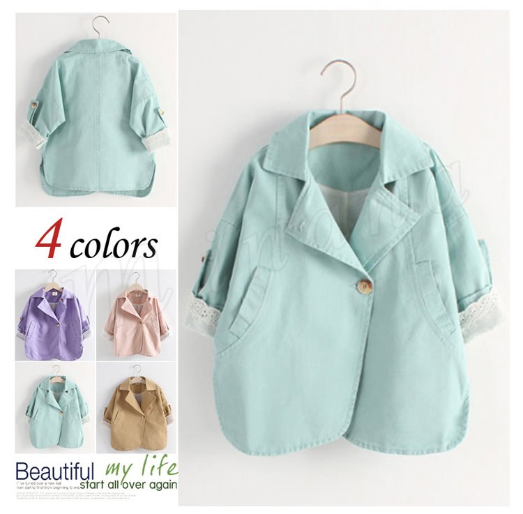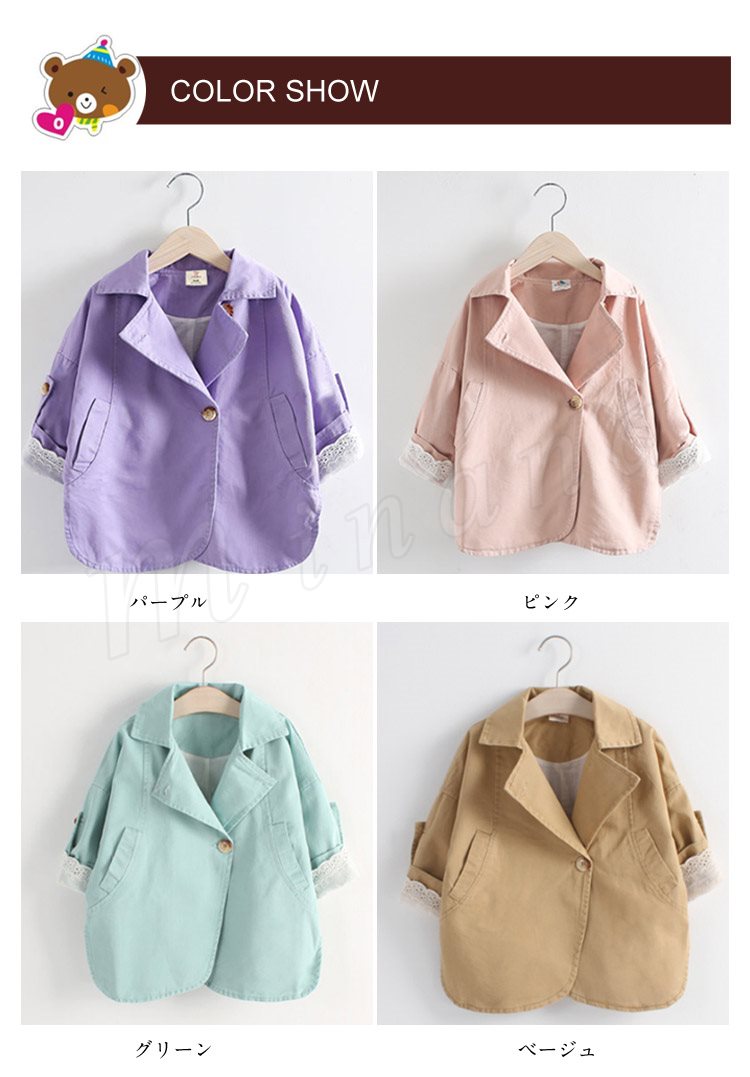 キッズ 子供服 こども 子ども アウター コート トレンチコート パステルカラー 春夏 シンプル カジュアル ガールズ 女の子 七分袖