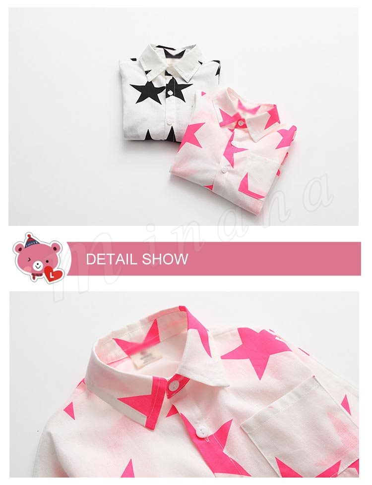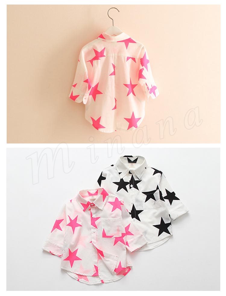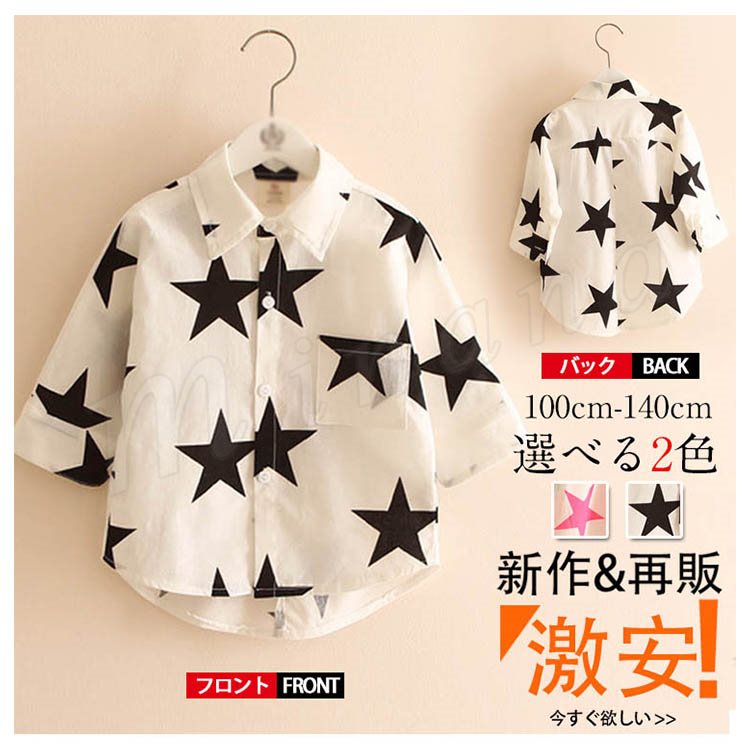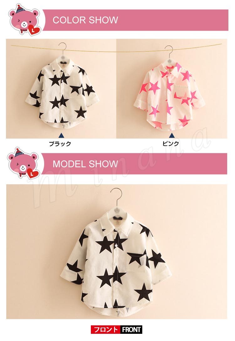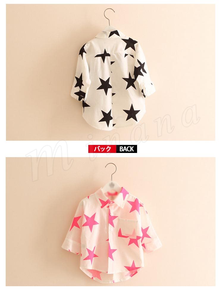 送料無料 シャツ 女の子 星柄 長袖 シャツ おしゃれ トップス ガールズ キッズ ナチュラル 夏服