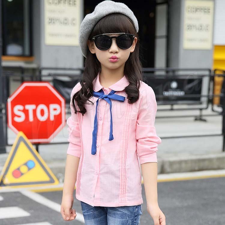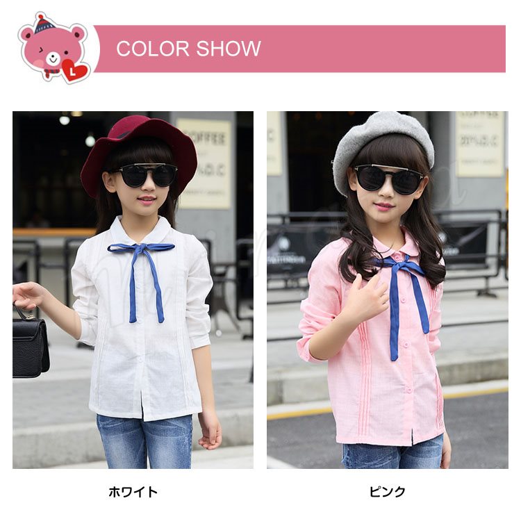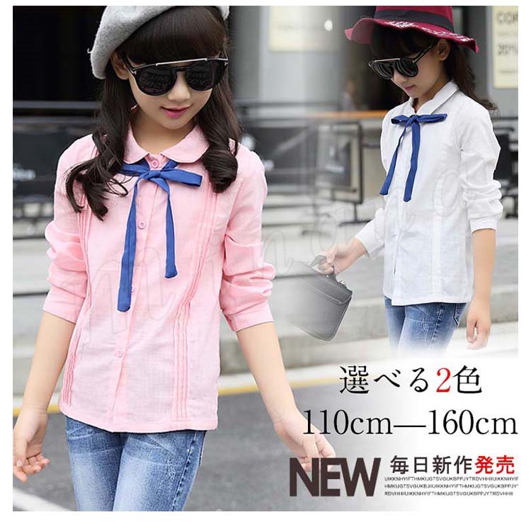 ボウタイ 長袖シャツ 女の子 シャツ リボン 丸襟 シャツ 発表会 入園式 卒園式 卒業式 お受験 子供 キッズ 子供服
