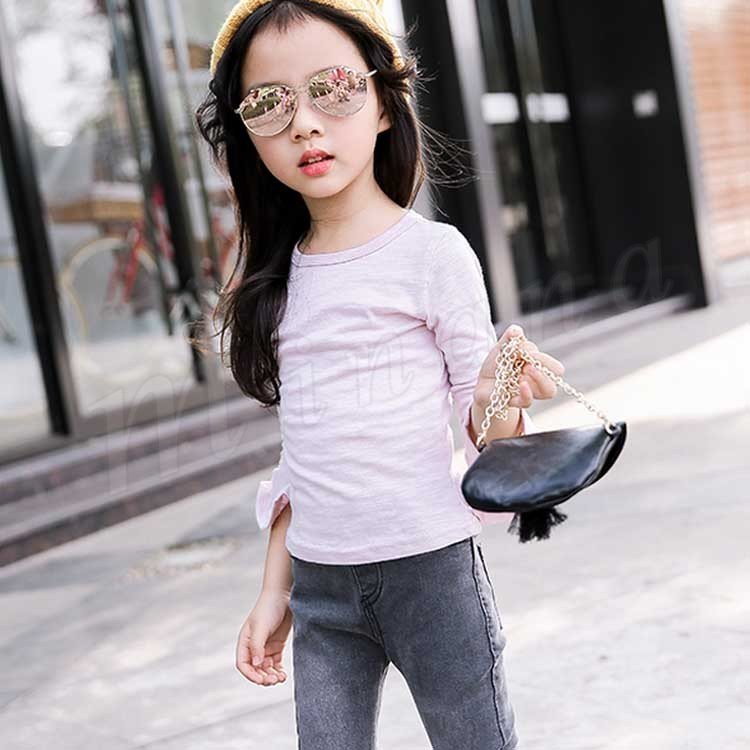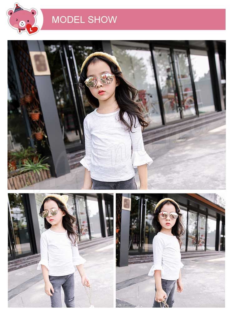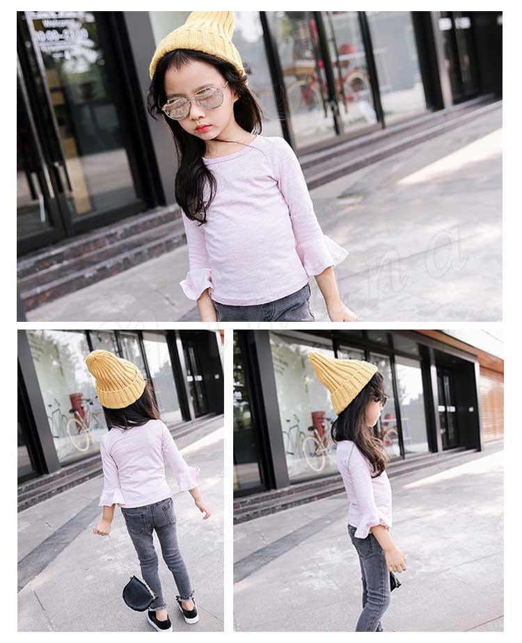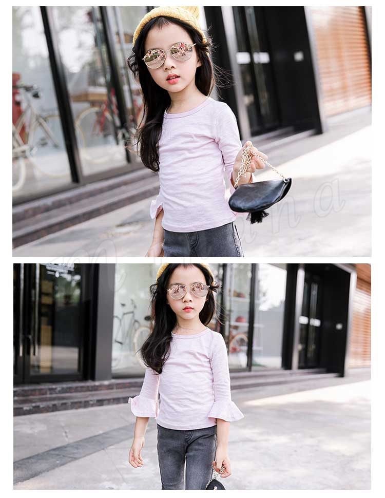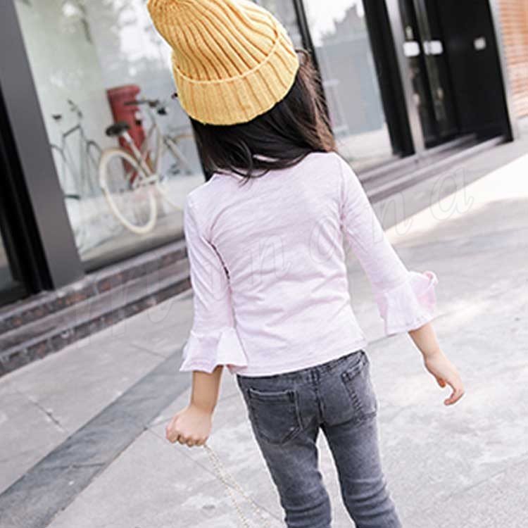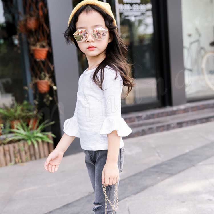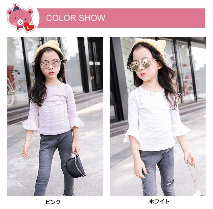 フレア袖 Tシャツ 7分袖 長袖 Tシャツ 女の子 子供 キッズ ジュニア クールネック 子供服