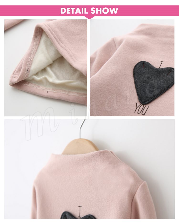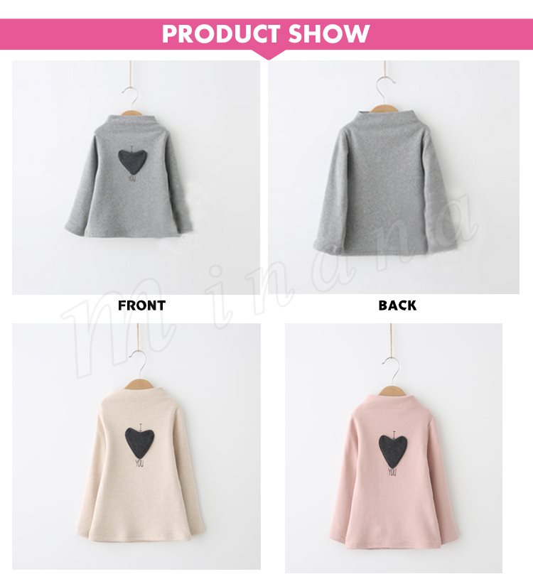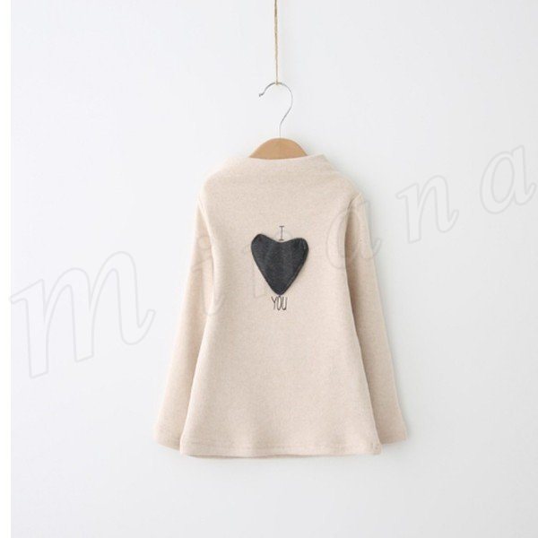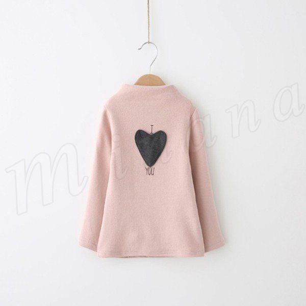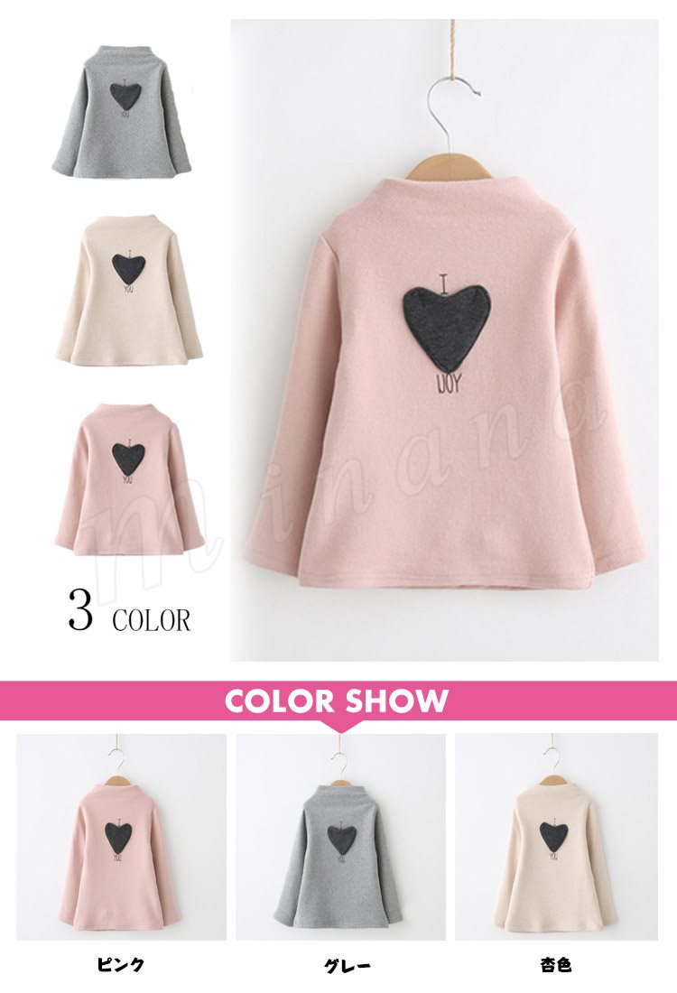 送料無料子供 Tシャツ ハート飾り 長袖 裏起毛 厚地 プルオーバー ハイネック 無地 トレーナー カジュアル Aライン お出かけ