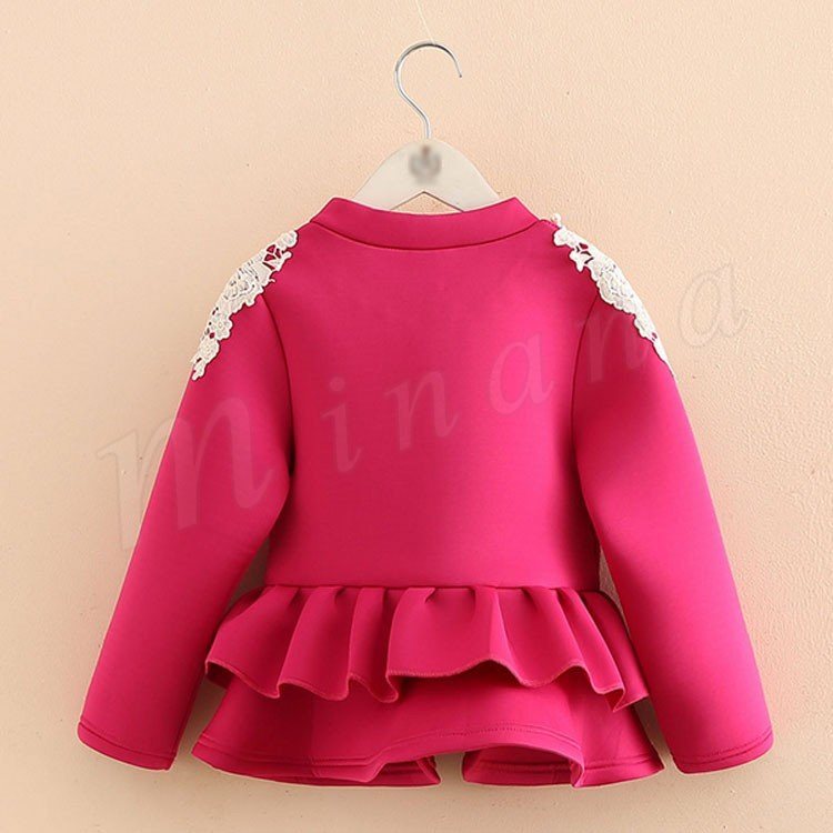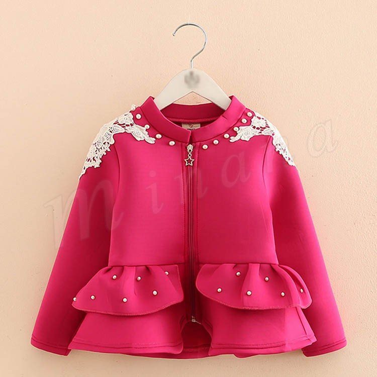 ウエストに大きめフリルをあしらった可愛い一着。ジップアップパーカー 女の子 フリルトップス アウター レース パール付き パーカー ジップア