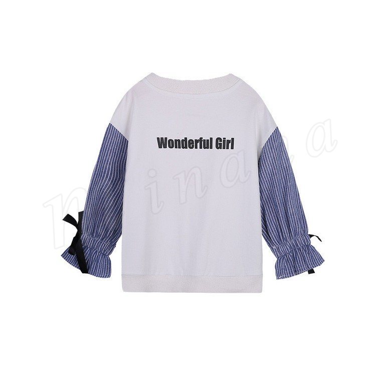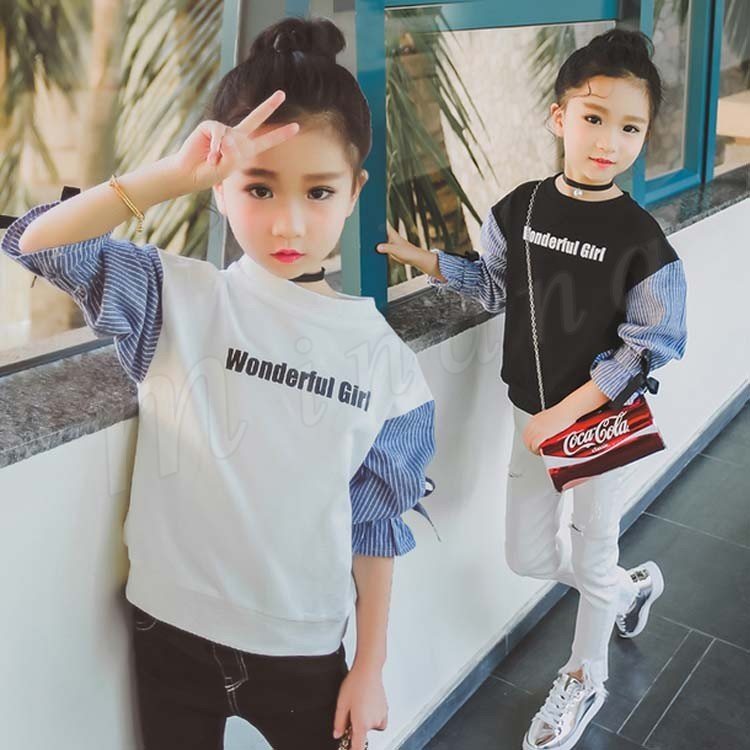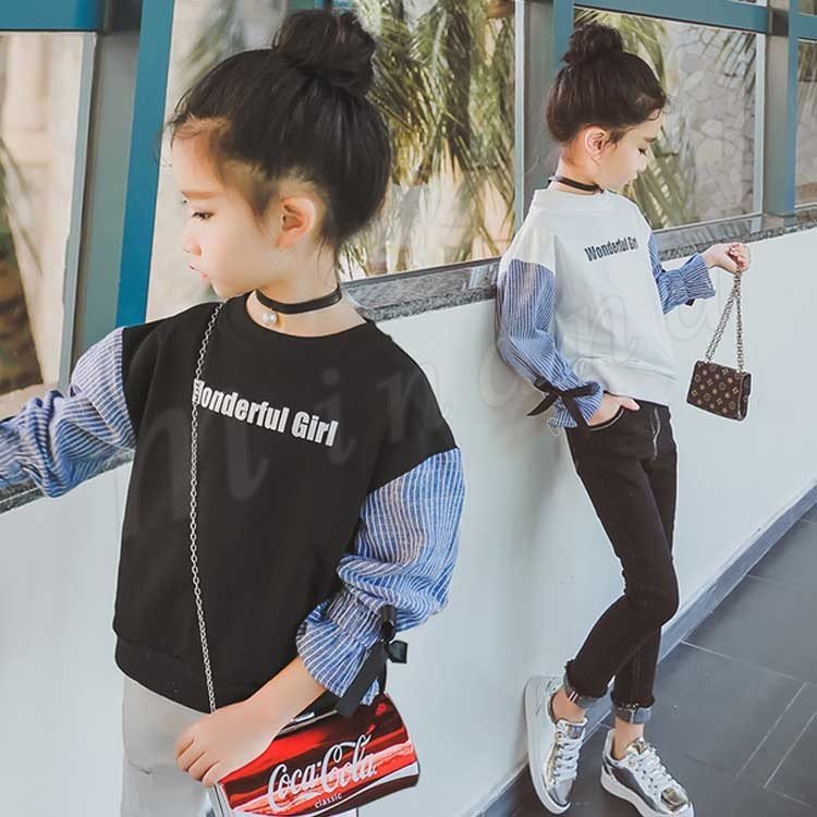 女の子 トレーナー 袖ストライプ 袖切り替え スウェットトップス トレーナー トップス 長袖 Tシャツ パーカー スエット トレーナー チュ