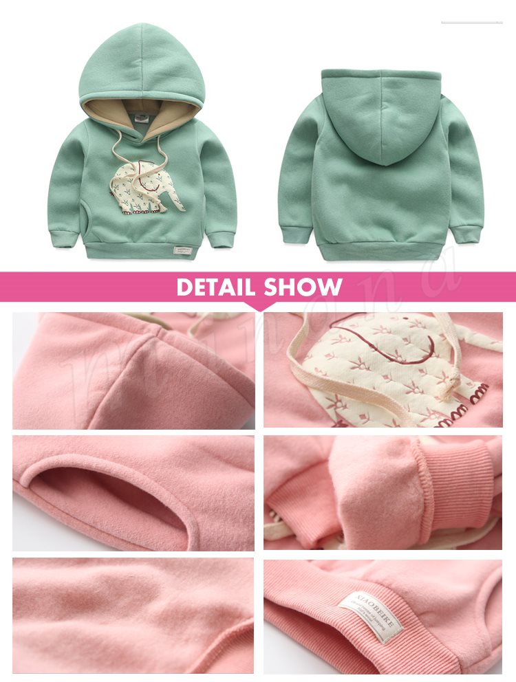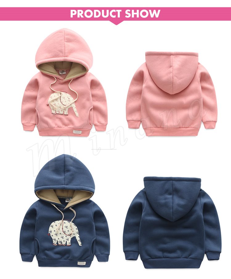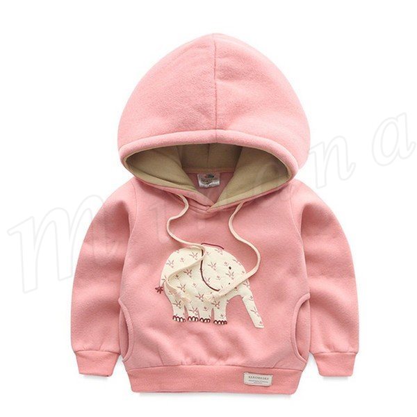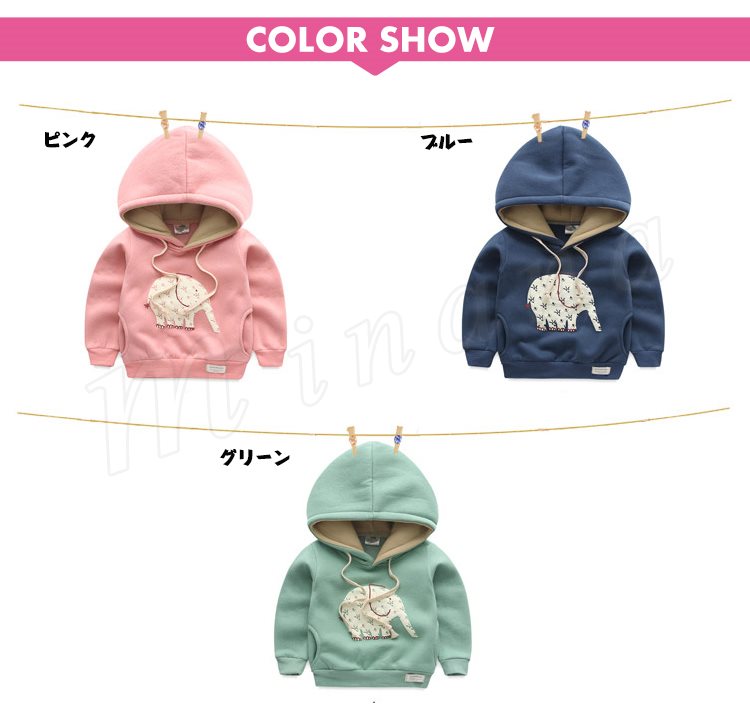送料無料子供 パーカ フード付き プルオーバー Vネック プリント 象柄 長袖 リブ袖口 カジュアル 裏起毛 防寒 厚地 ショート丈 子供服