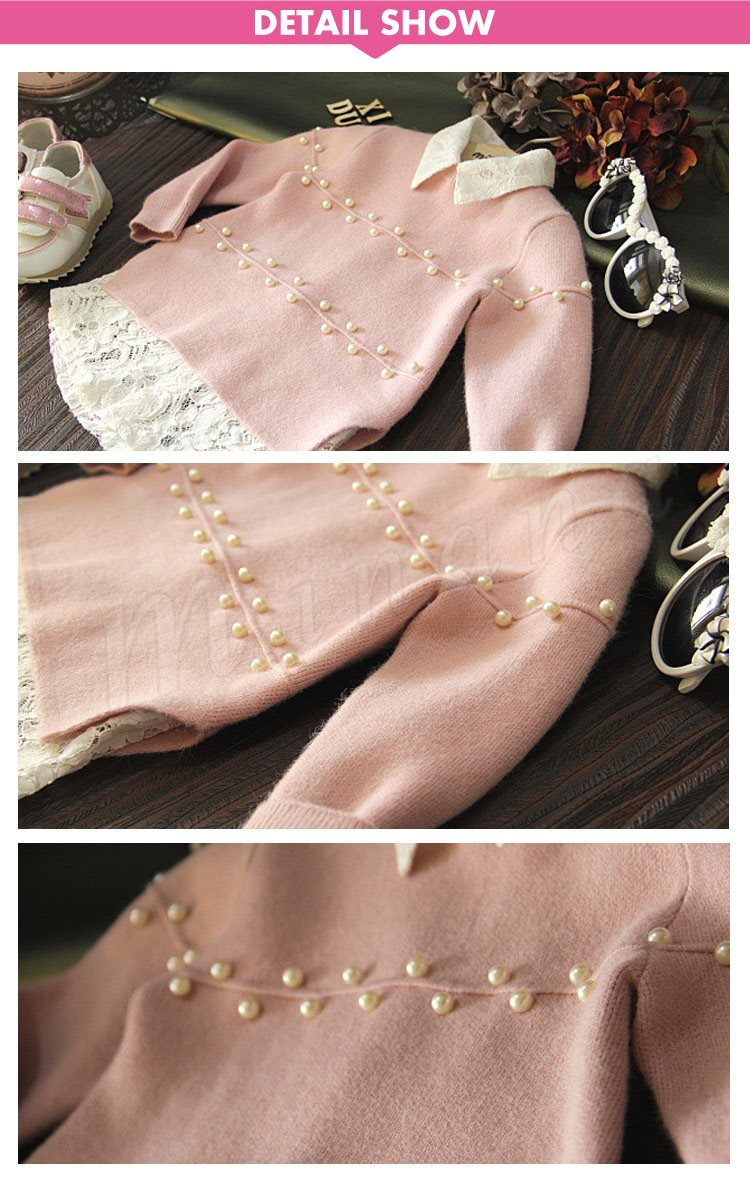 送料無料子供服 セーター ニットトップス パール付き 長袖ニット 無地 ニット ブラウス 2点セット
