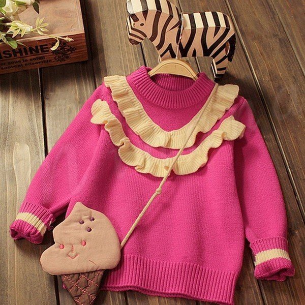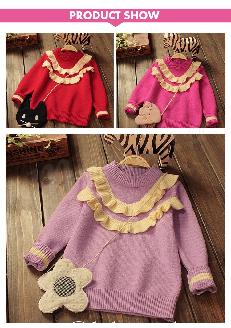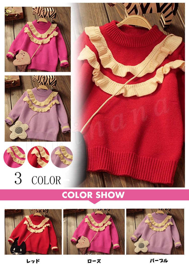 送料無料子供服 ニット セーター プルオーバー クルーネック スカラップ柄 バイカラー インナー ショート丈 トップス フリル