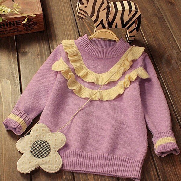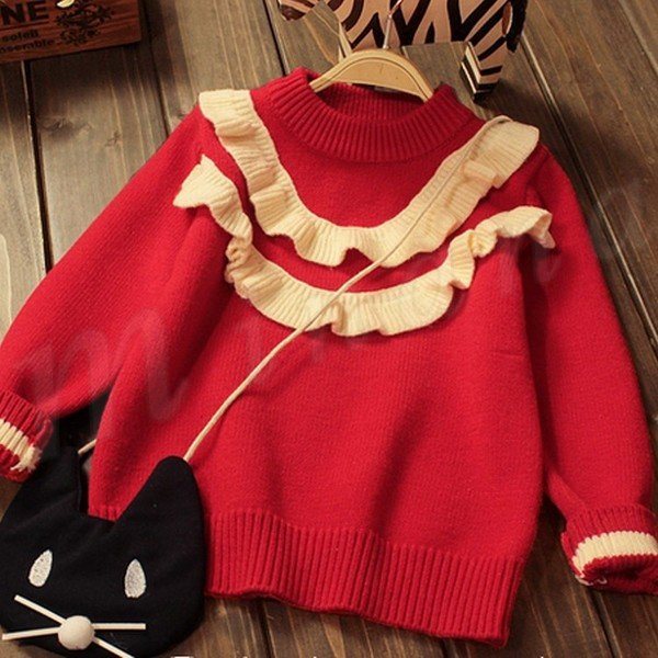 子供服 ニット セーター プルオーバー クルーネック スカラップ柄 バイカラー インナー ショート丈 トップス フリル