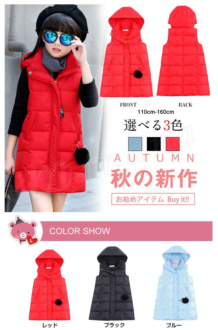 中綿ベスト ダウンベスト ロング ベスト 女の子 中綿コート ノースリーブ ジャケット 可愛い 子供コート 子供服 子供 キッズ コート ア