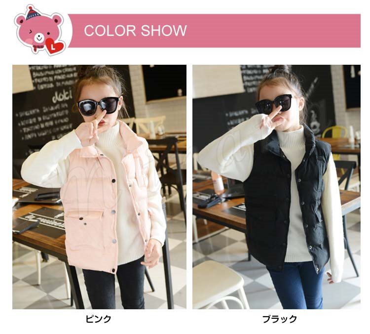 中綿ベスト 女の子 中綿コート ノースリーブ ジャケット 可愛い 子供コート 子供服 子供 キッズ コート アウター ジュニア 子どもコート