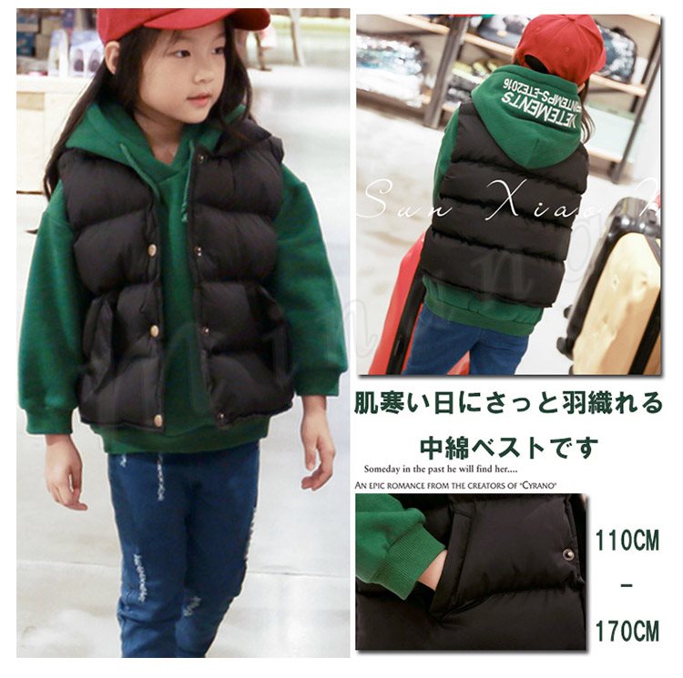 子供服 ベスト 中綿ベスト ジャケット ノースリーブ 羽織 アウター コート ブルゾン 防寒 親子ベスト 中綿入り 袖なし キッズ ジュニア