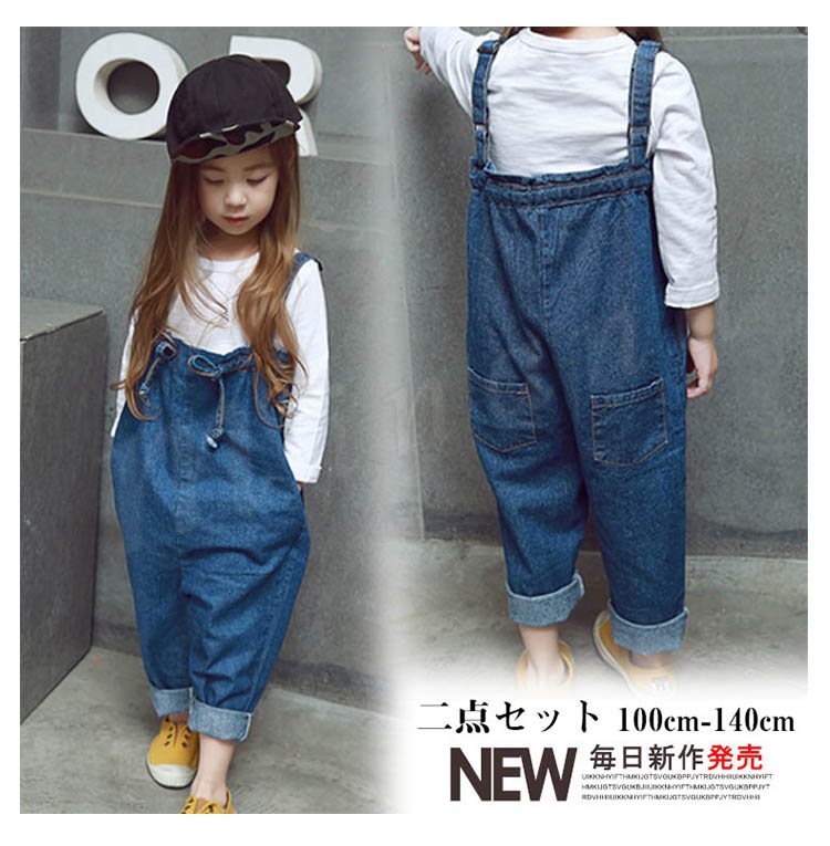 送料無料女の子 子供 Tシャツ+サロペットパンツ 2点セット 長袖 Tシャツ デニム オールインワン デニム サロペット パンツ 子供服 キッズ