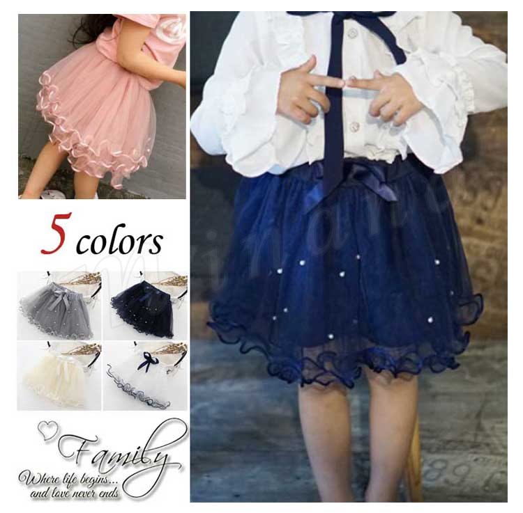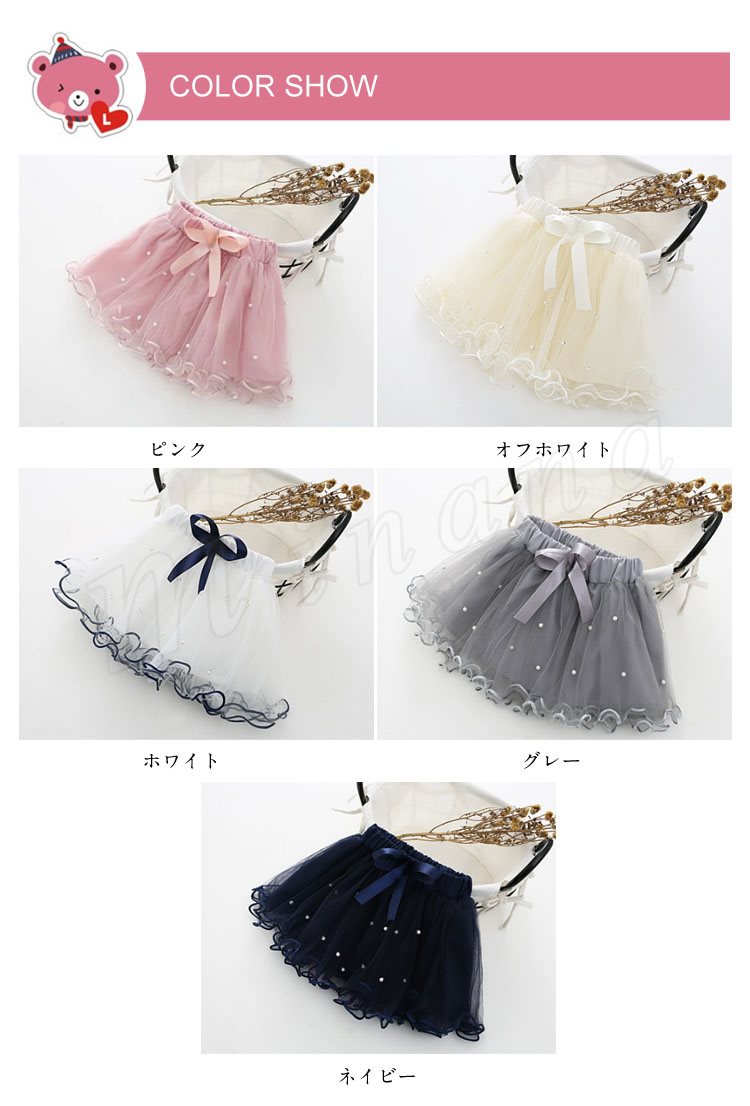 キッズ スカート チュールスカート ボトムス 女の子 こども 子供服 パール リボン りぼん フレアスカート ミニスカート ふわふわ チュール 新作