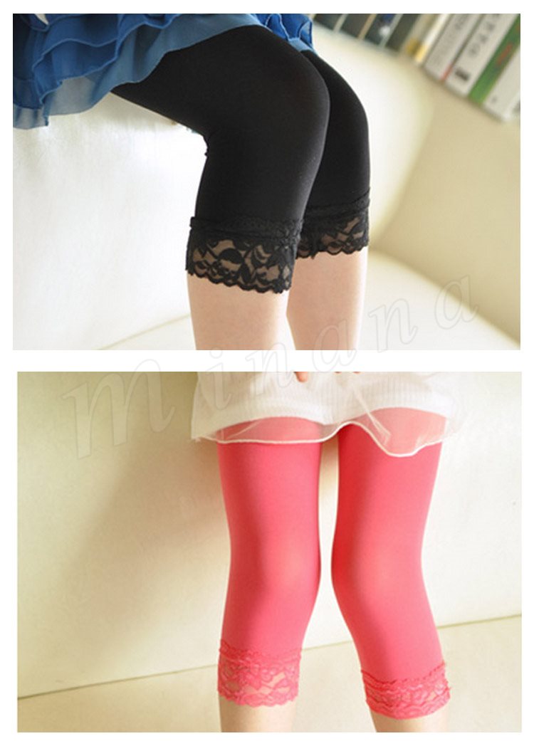 送料無料 レースレギンス 子供レギンス 薄手 夏 7分丈 キッズ 子供 ウェストゴム ストレッチ 裾レース 夏新作 ズボン ダンス 可愛い キュート