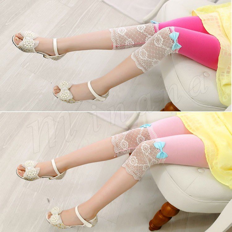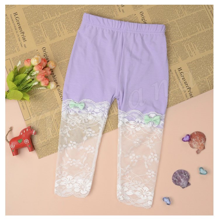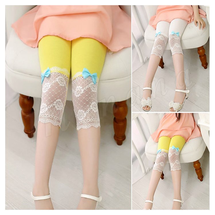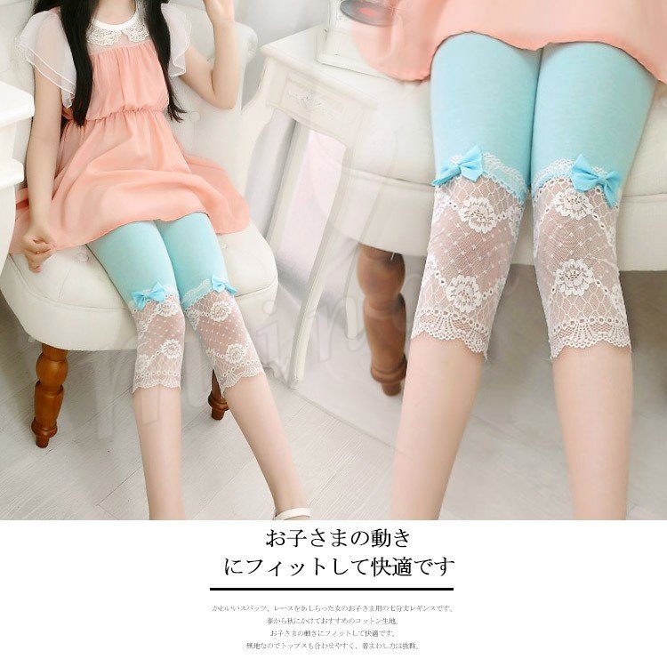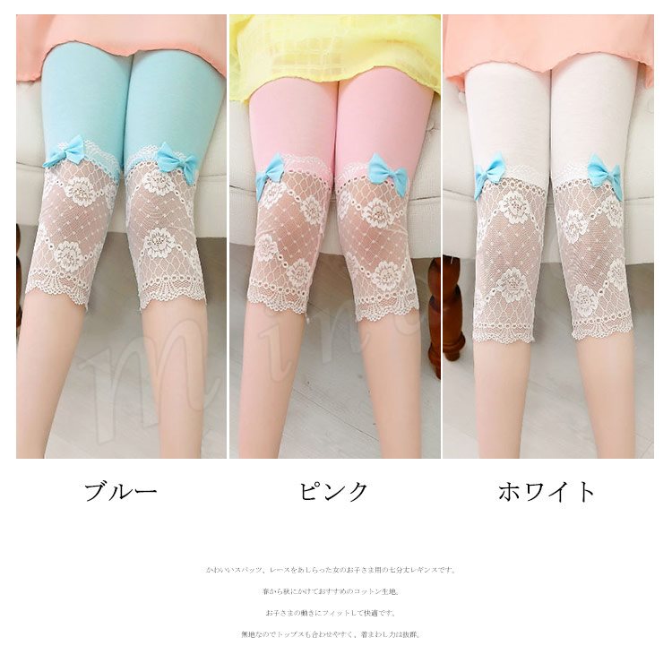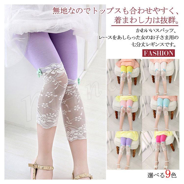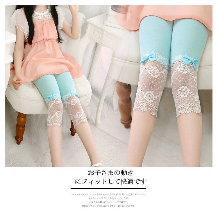 子供用 レギンス スパッツ 7分丈 レギパン 女の子 レース切り替え リボン付き キッズ ウエストゴム ストレッチ 女児 キッズレギンス