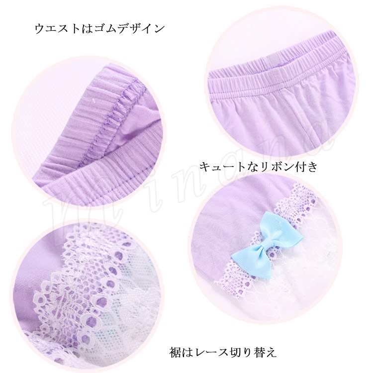 | かわいいスパッツ、レースをあしらった女のお子さま用の七分丈レギンスです。 春から秋にかけておすすめのコットン生地。 お子さまの動きにフィットして快適です。 無地なのでトップスも合わせやすく、着まわし力は抜群。 | |