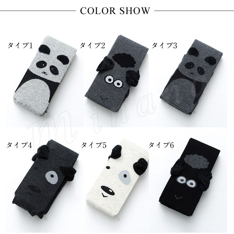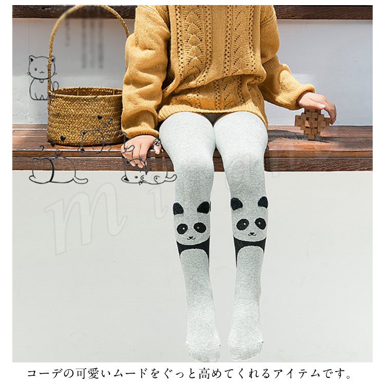 | 動物をドッキングしたデザインがキュートなタイツです。 にっこりした表情のパンダや犬がなんとも愛らしいポイント♪ また飛び出た耳がとってもキュート。 綿混素材のソフトな着け心地で、お子様の快適さが一日中持続します。 コーデの可愛いムードをぐっと高めてくれるアイテムです。 | |